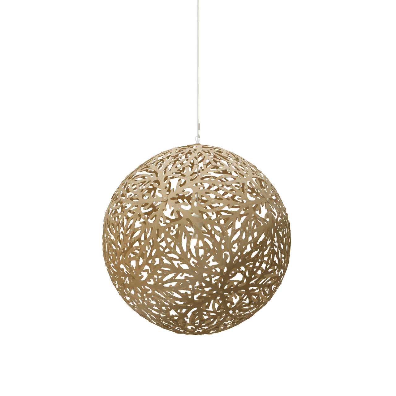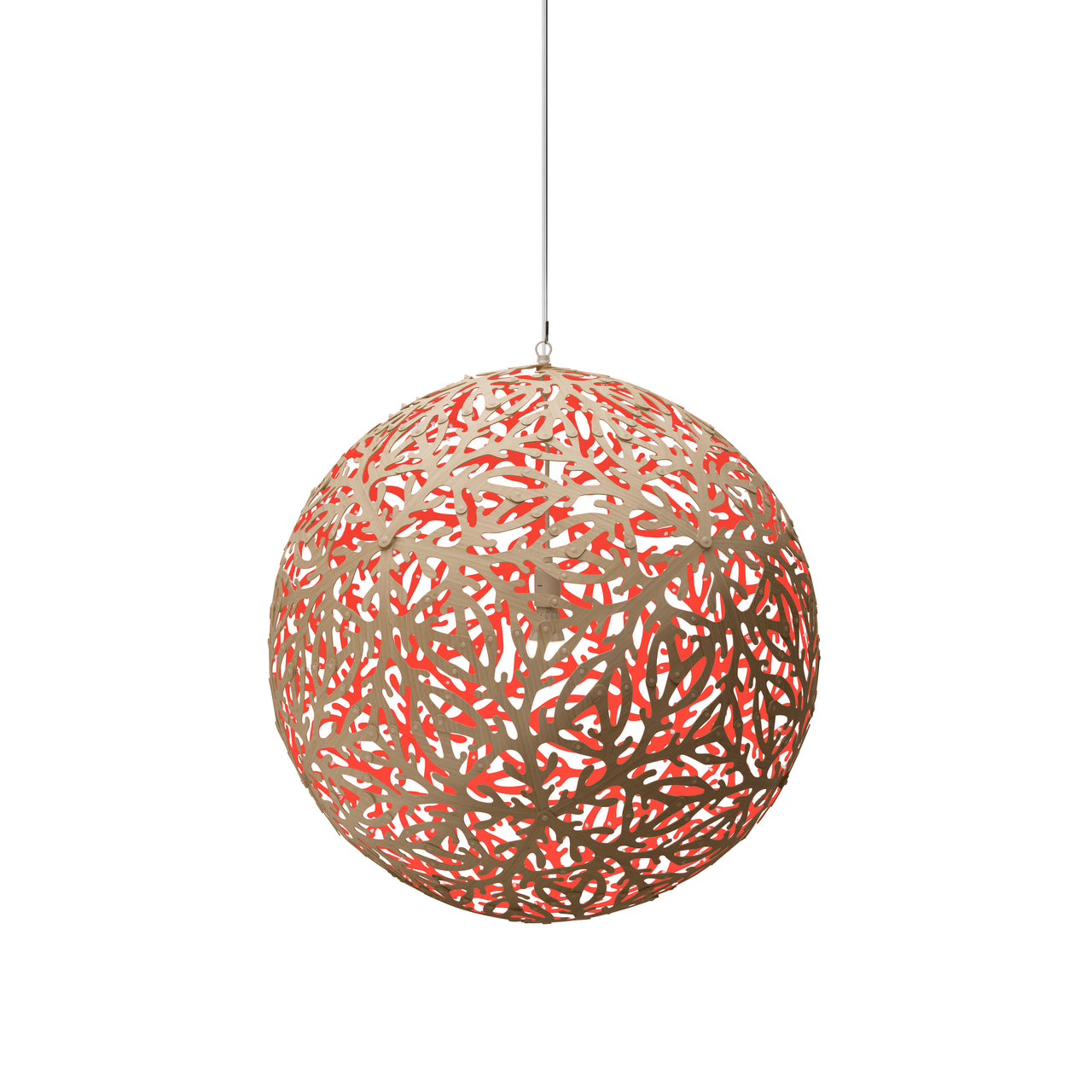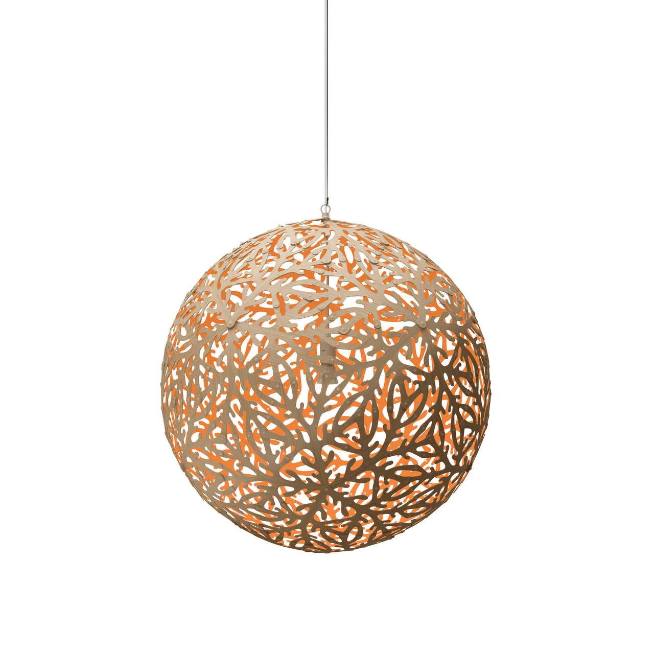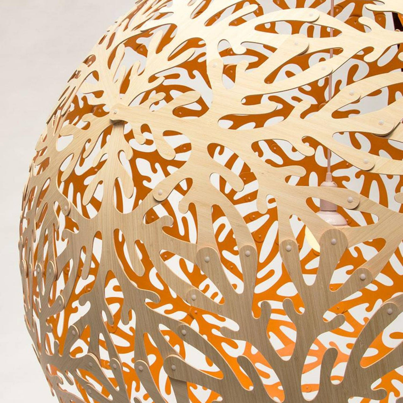 With the Sola Pendant Light, designer David Trubridge ruminates on Icarus, the Greek myth about the boy who flew too close to the sun. Echoing the heat that melted the lad's wings, the shade's intricate pattern looks much like flares that form and curl on the solar surface. In sustainably sourced bamboo plywood in a natural finish or natural with an orange interior to heighten the fiery effect. First acclaimed at a Milan design fair installation, along with David's sculptural Wing light (also at A+R), and subsequently acquired by the Pompidou Centre in Paris for its permanent collection.