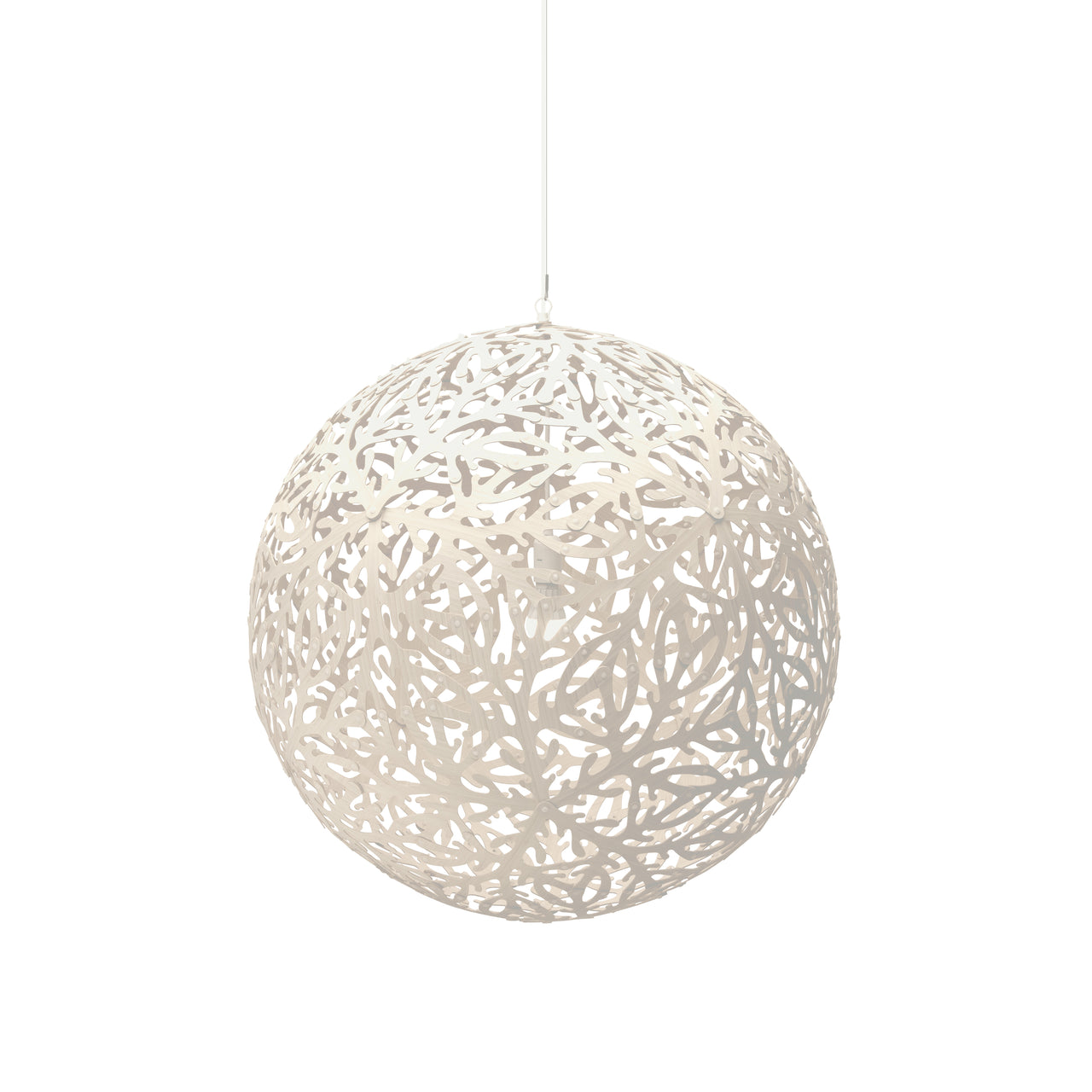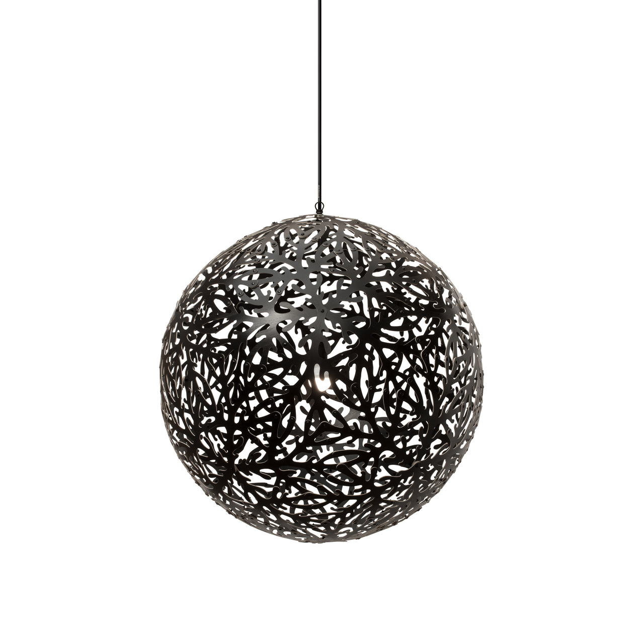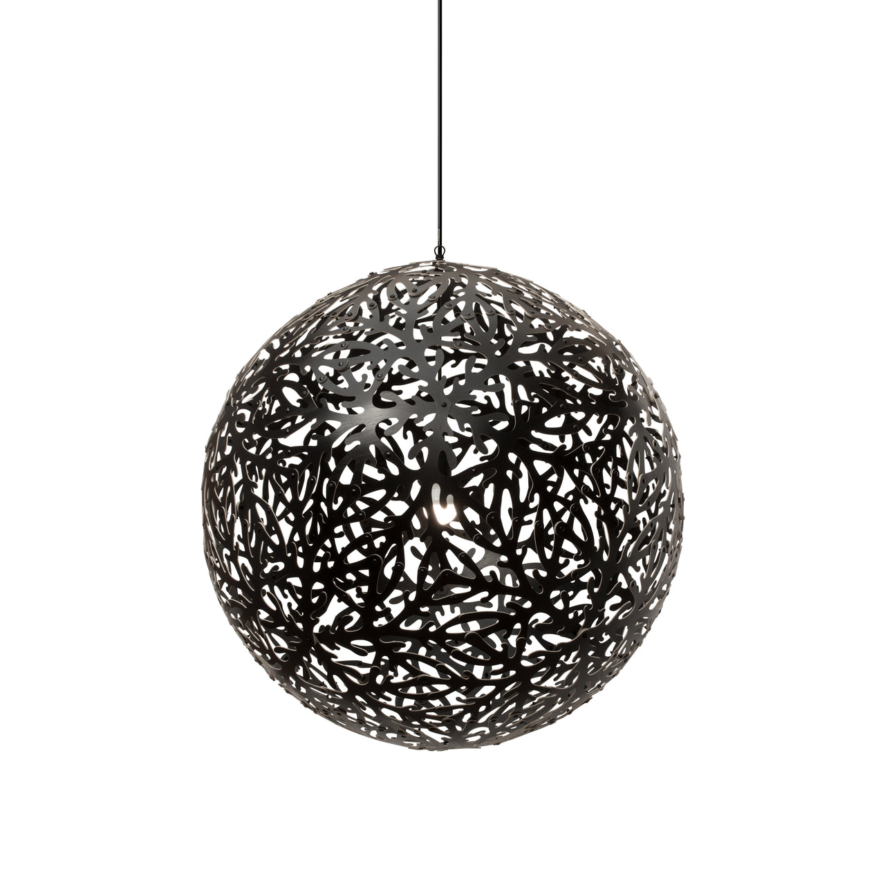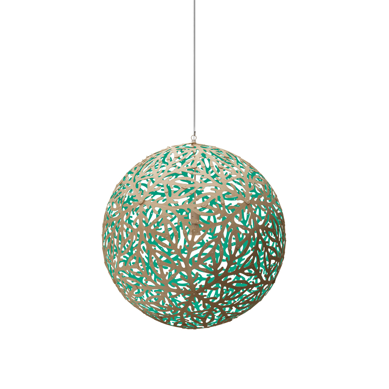With the Sola Pendant Light, designer David Trubridge ruminates on Icarus, the Greek myth about the boy who flew too close to the sun. Echoing the heat that melted the lad's wings, the shade's intricate pattern looks much like flares that form and curl on the solar surface. In sustainably sourced bamboo plywood in a natural finish or natural with an orange interior to heighten the fiery effect. First acclaimed at a Milan design fair installation, along with David's sculptural Wing light (also at A+R), and subsequently acquired by the Pompidou Centre in Paris for its permanent collection.