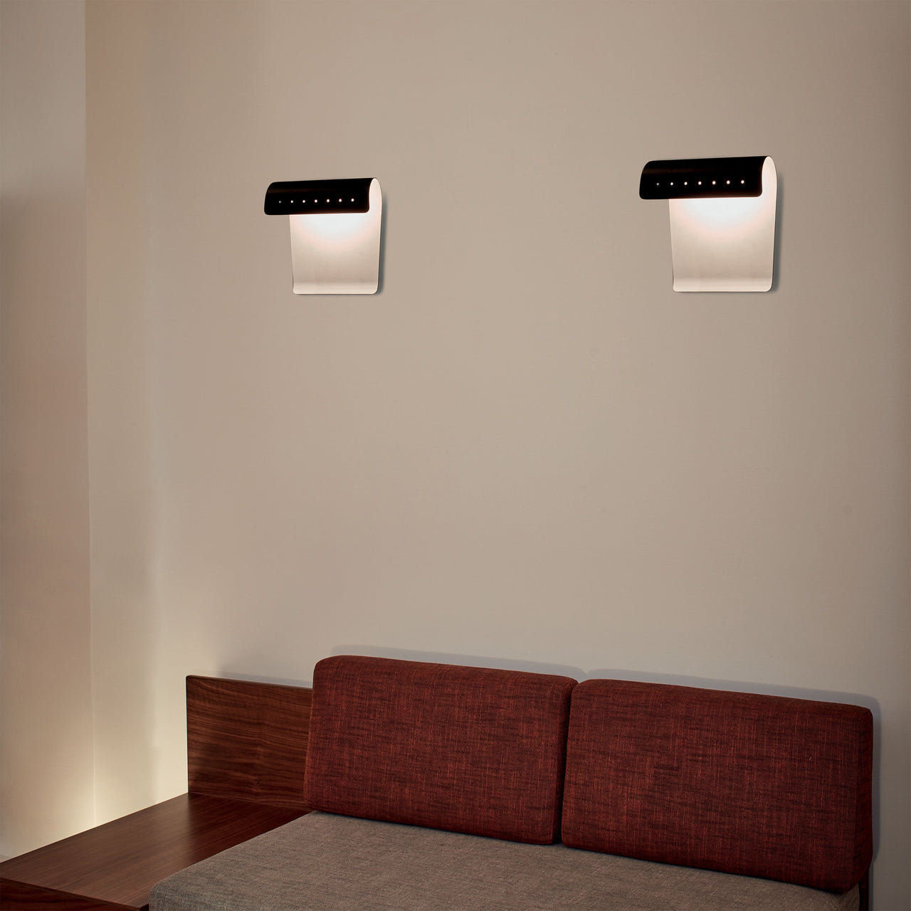 Curling out from its wall mount, Jacques Biny’s ‘50s-era light is recast for today with an integrated LED. A simple sheet of perforated metal radiates a softly diffused light in the industrial style of the landmark French designer. Fashioned in steel and aluminum by Paris' DCW Éditions, the fixture is finished in crisp matte black and white.