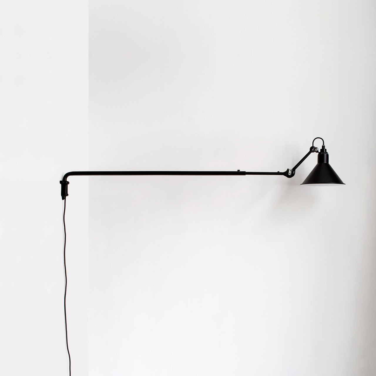 Surprisingly, the long arm of N°213 works both in smaller spaces to save floor space as well as in larger areas, where it might spotlight a desk, conversational grouping, dining table or even a piano. This variant in French designer Bernard-Albon Gras' 1921 series brings a dramatic visual sweep to his pioneering articulated lighting scheme with its usefulness in directing illumination exactly where it is needed most. With a timeless steel structure in black satin-finish, the wall-mounted lamp offers a choice of conic or round shade in a range of colors as well as chrome, copper or brass.