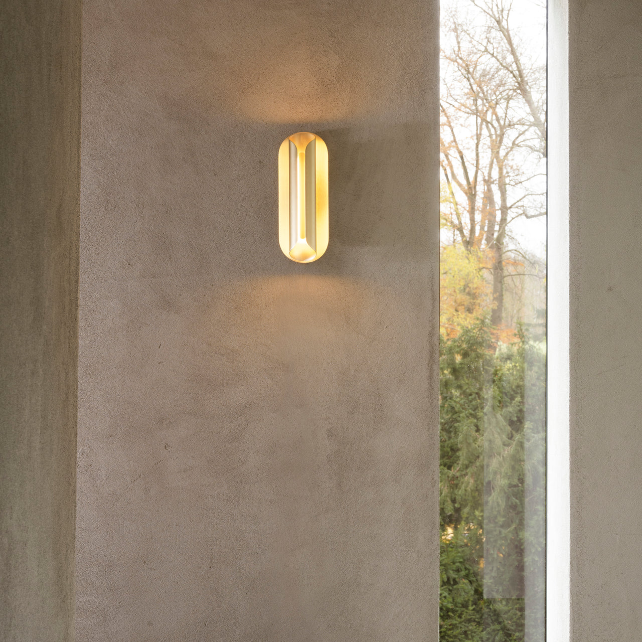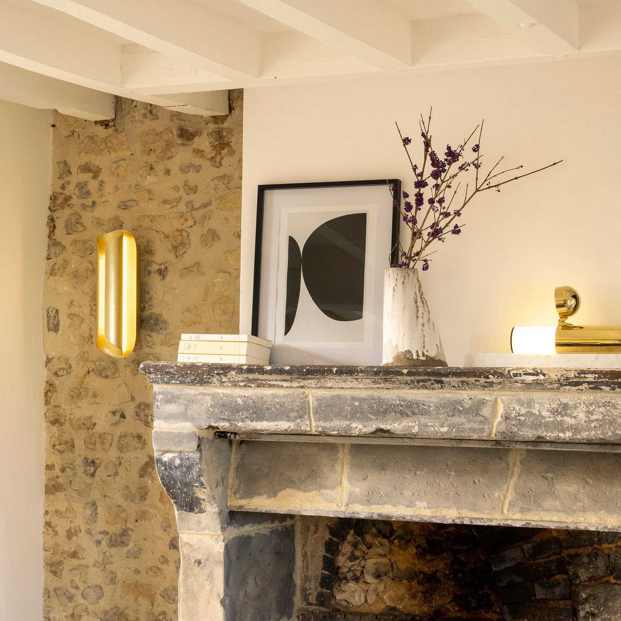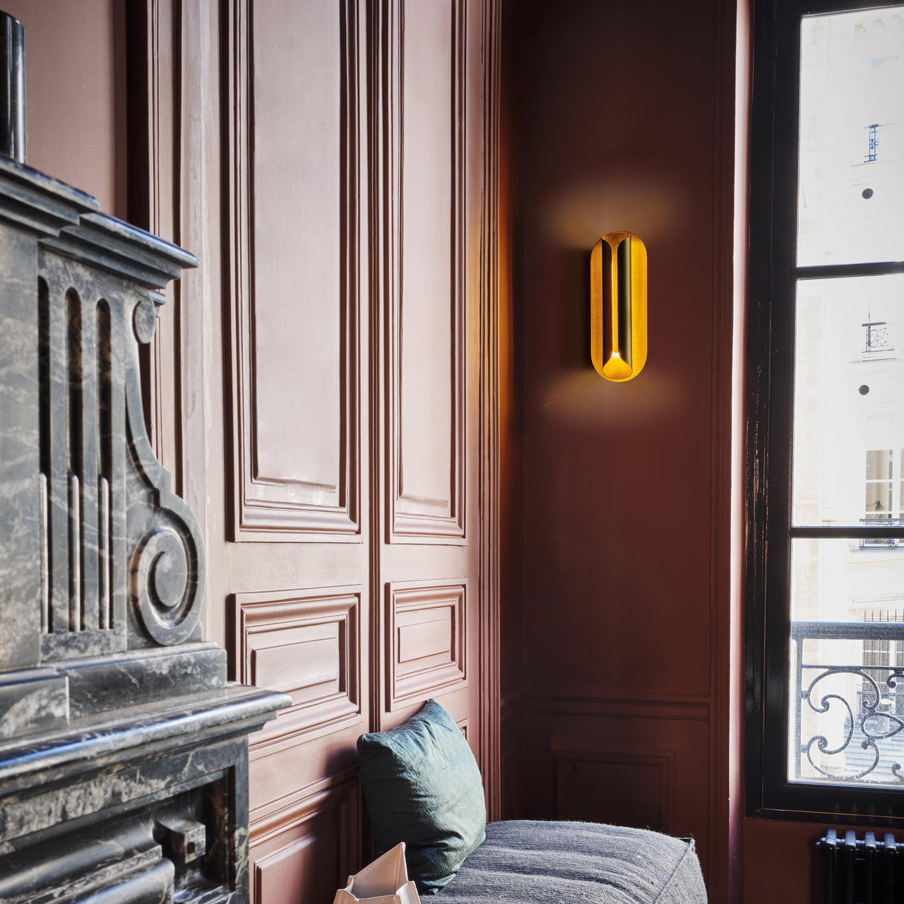 From Paris-based DCW Éditions, Rosalie hails from the studio’s Atmospherics collection, meant to moodily bridge the hours between light and darkness. Created by the architect and designer Julie Fuillet and the lighting wiz Emeric Thiénot, the wall lamp pairs 2 thin aluminum plates with a gilt finish. One is rolled up to diffuse the light from its integrated LED inside, relaying a warm and reassuring golden glow.