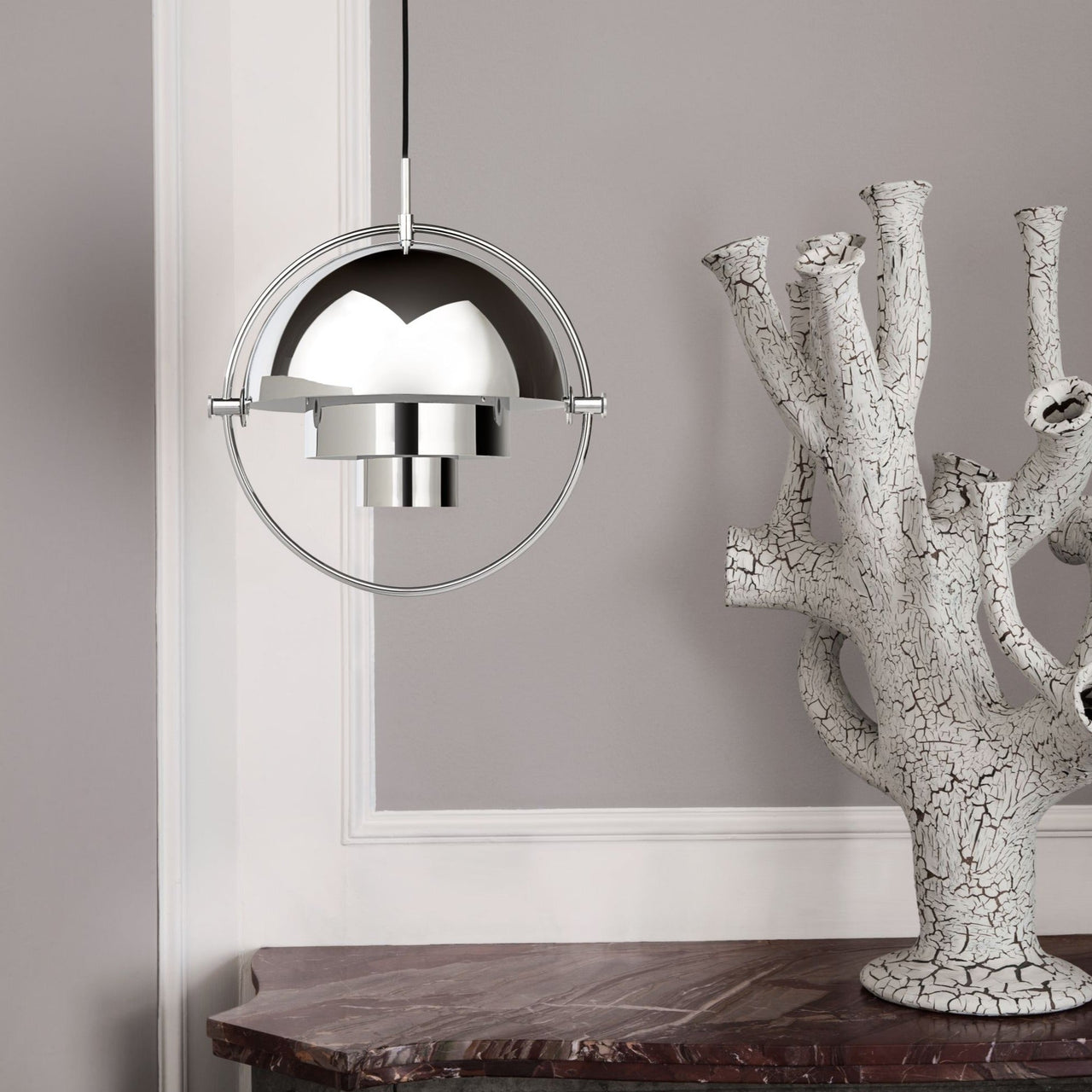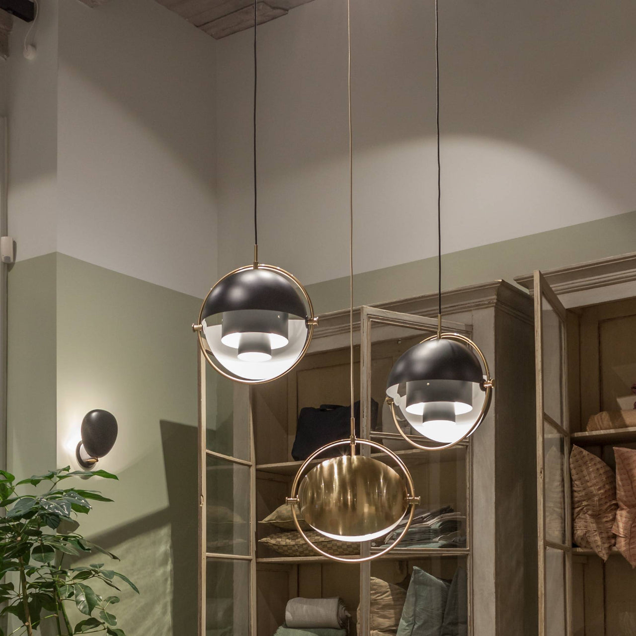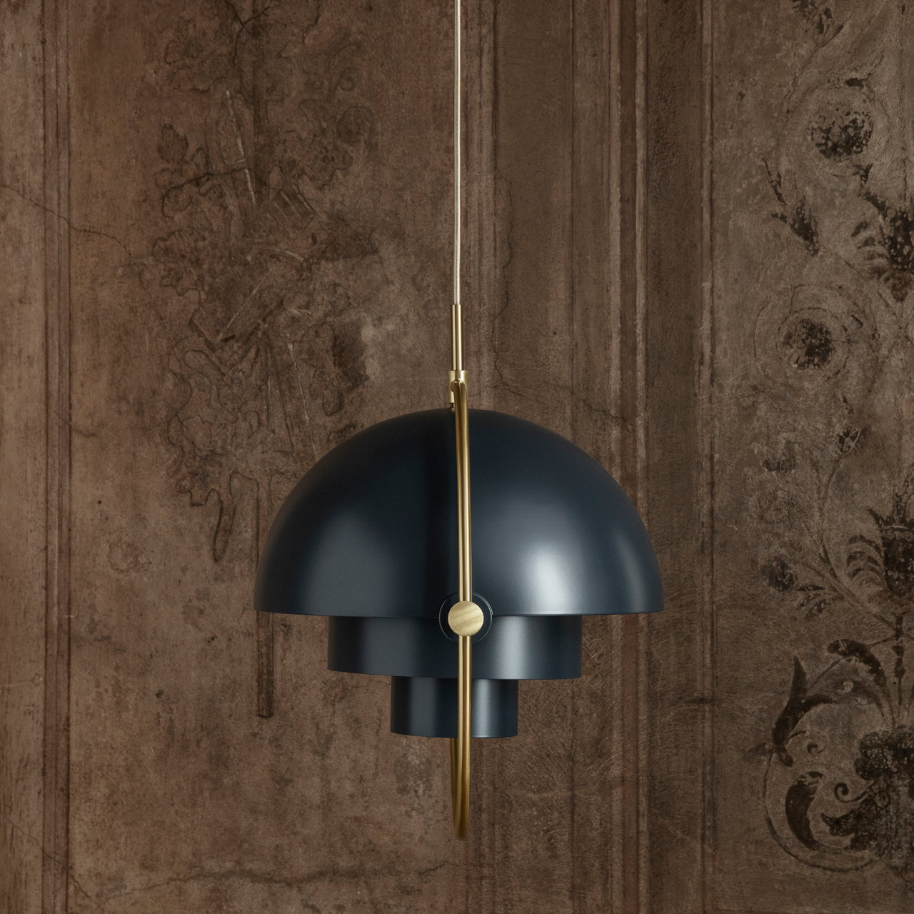 Gubi’s small Multi-Lite Pendant offers a scaled-down version of Louis Weisdorf’s memorable 1972 design. Held within a suspended brass ring, the 2 individually rotating shades allow the light to be directed upwards, downwards or as an asymmetrical art light. At the same time, the eye is shielded from any glare. First introduced in the fabled era of Nordic style, Multi-Lite remains timelessly functional.