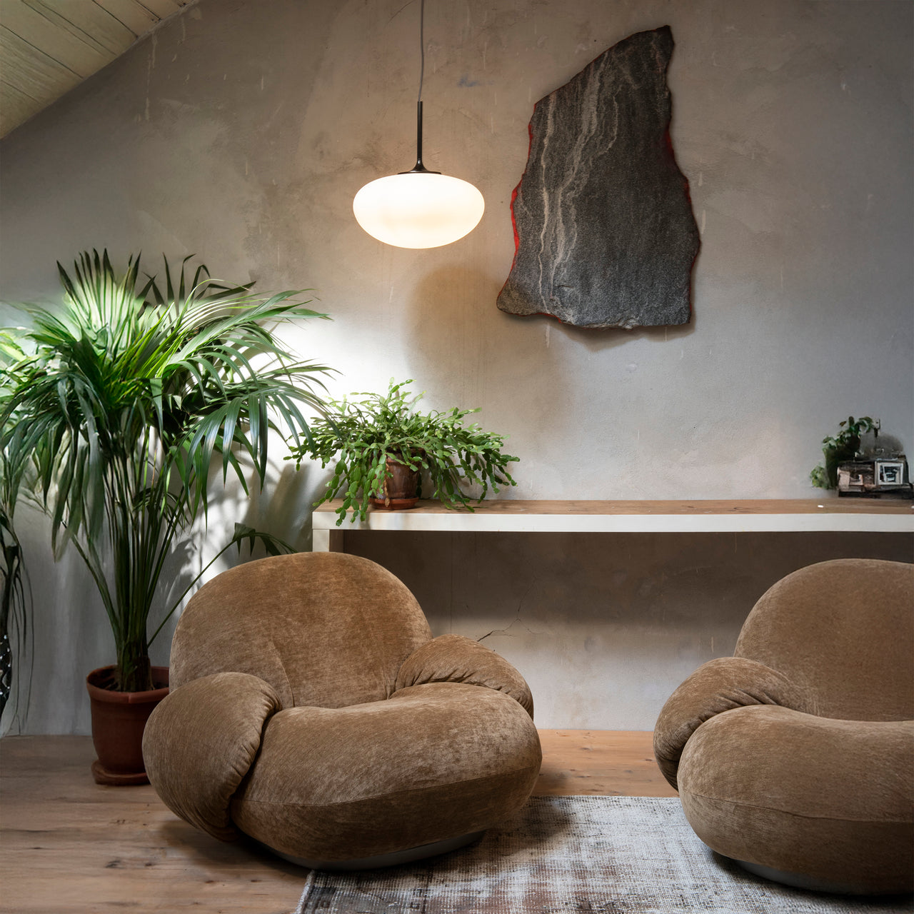 By simply flipping the original upside down, Gubi arrived at a new pendant counterpart to Stemlight, Bill Curry’s iconic midcentury table lamp. Characterized by its organic form and groundbreaking all-in-one concept without an extraneous shade, the light’s frosted glass diffuser radiates a warmly filtered illumination. Whether situated in a residential, commercial or hospitality setting, it’s a timeless addition to any space.
