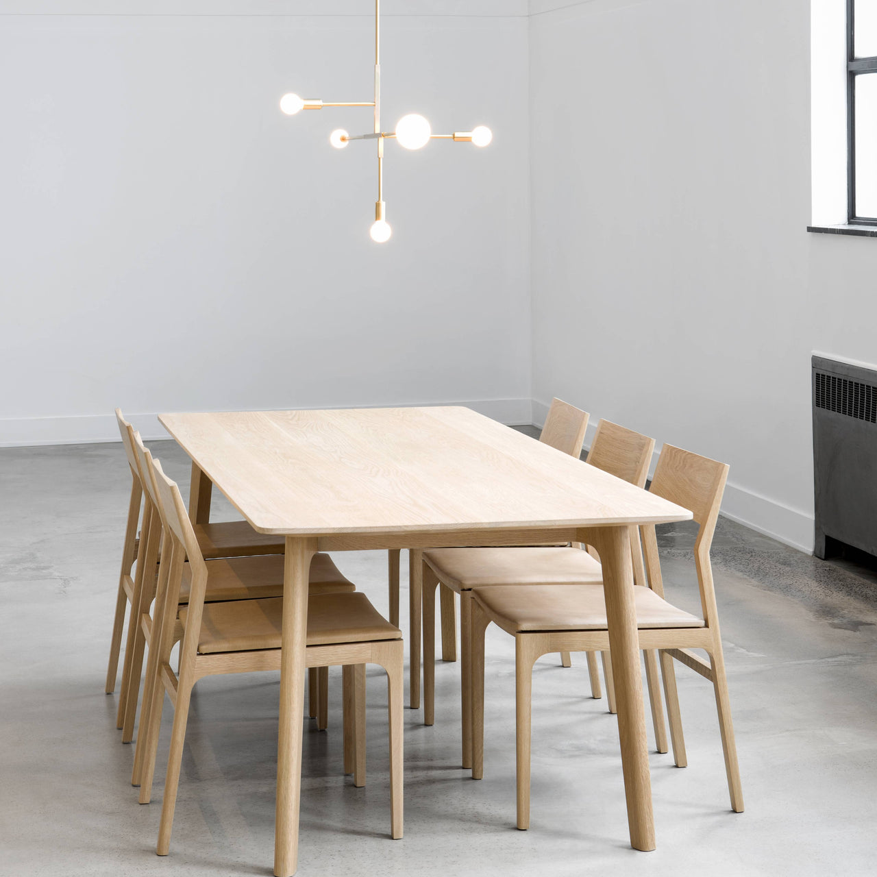 Cliff takes form as a linear cluster with a suspension lamp series in brass or graphite finish that features milk glass globes, all signature elements from the Montreal-based workshop of Lambert & Fils. In a range of proportionate sizes, the robust but functional arrangement of metal rods spreads the softened LED illumination across an interior space. A masterstroke of geometric appeal, the light also includes a matching canopy with a swivel option for slanted ceilings.