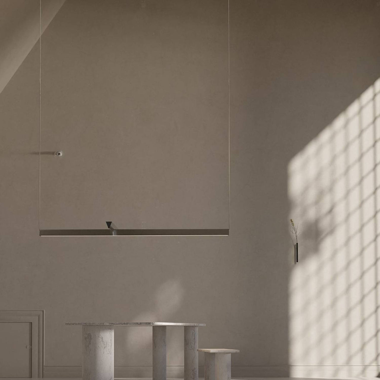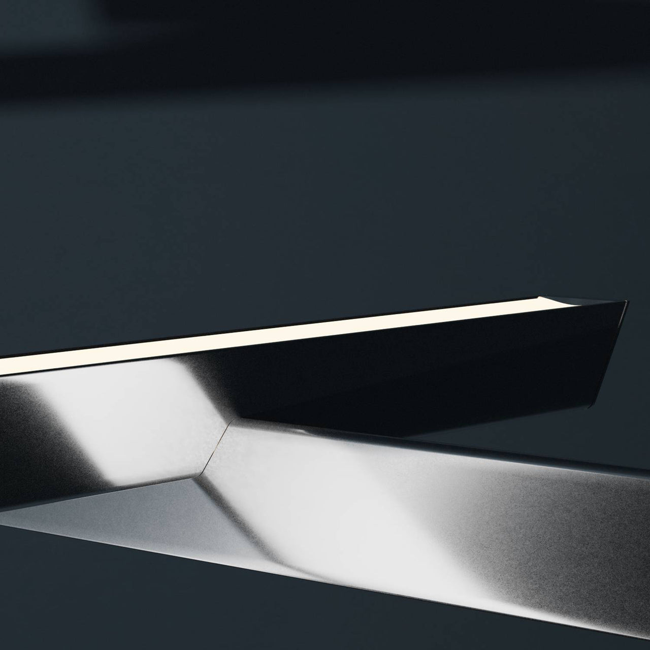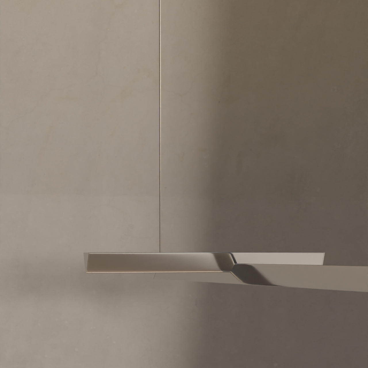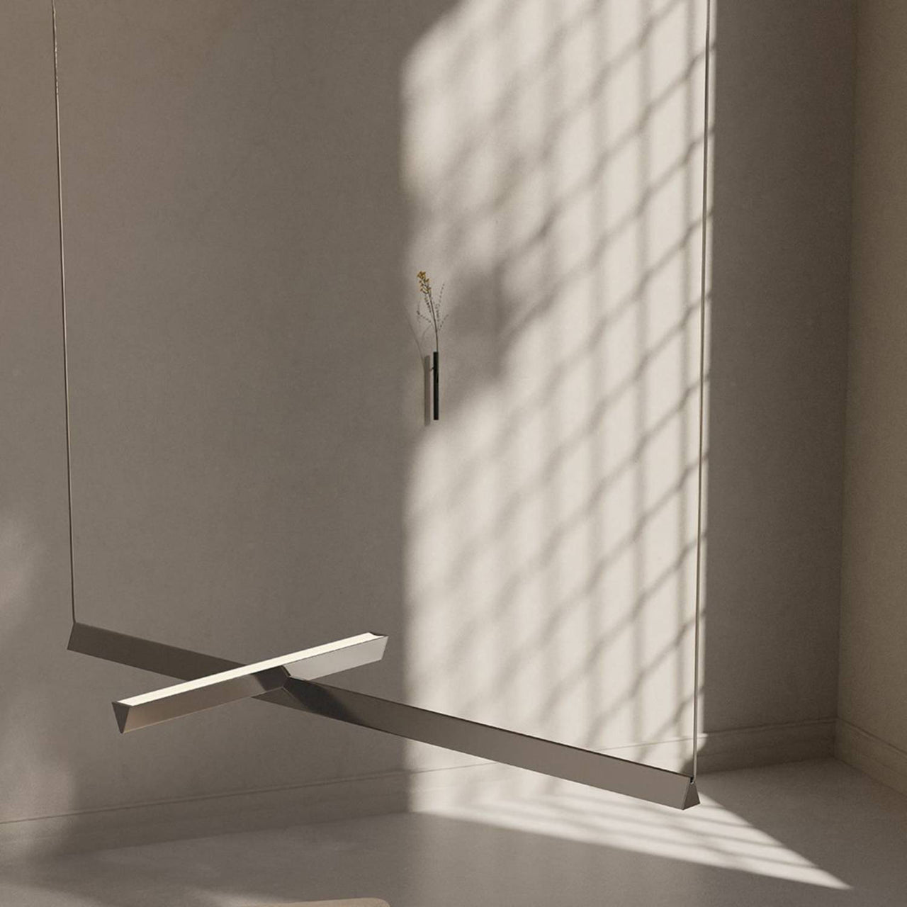 With a gleaming mirror-like finish, Mile 01 gets the luxe treatment in a version from Lambert & Fils’ showpiece Atelier range. Reflecting the surrounding space while providing a unifying focal point, designer Guillaume Sassville’s commanding cross fixture seems to float on air. Suspended on its thin wires, the handmade light’s LED technology provides diffused downward illumination via the frosted diffuser that runs the entire length.