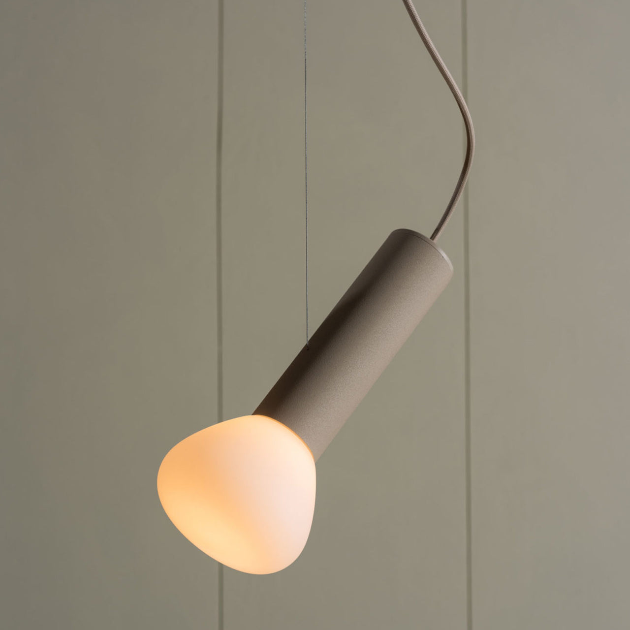 Swiss designer Adrien Rovero's elevated take on a simple flashlight for Canadian lighting brand Lambert & Fils also makes for a striking pendant. Created in handblown frosted glass with a sleek powder-coated aluminum body, it comes in a version to be hung vertically or a second option to be suspended at an angle via a support cable, ceiling anchor. Offered in a section of colors, Parc 02 is completely handmade in the brand's Montreal atelier.
