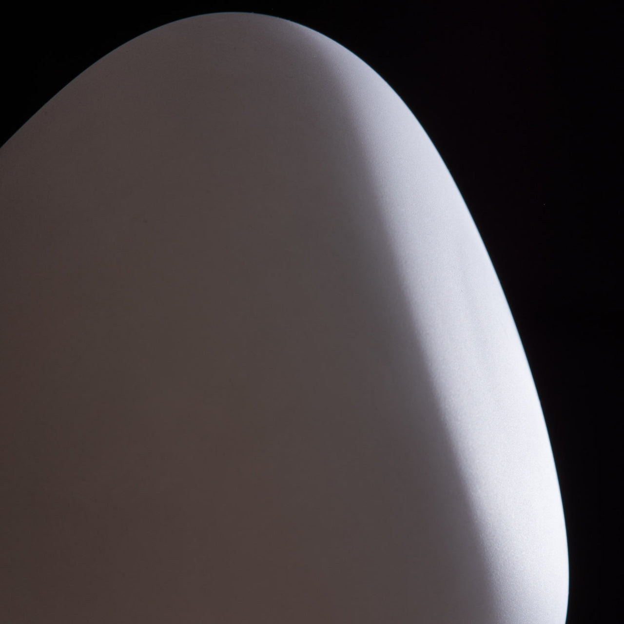 Hand-blown frosted glass, powder-coated aluminum, polyester