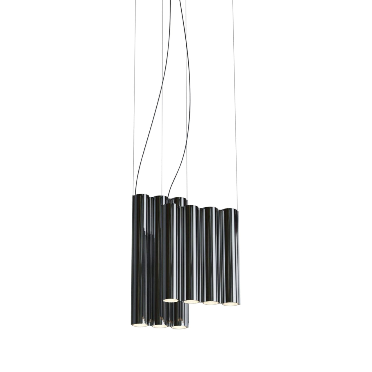 Silo 11’s parallel 2 shapes, like Lambert & Fils' sibling clustered suspension lamps, take design cues from brutalist concrete towers, cityscapes and even metallic wind instruments. Elegantly translated as custom aluminum extrusions offered in varied finishes, the modular uplight-downlight creates a theatrical yet sleek composition.