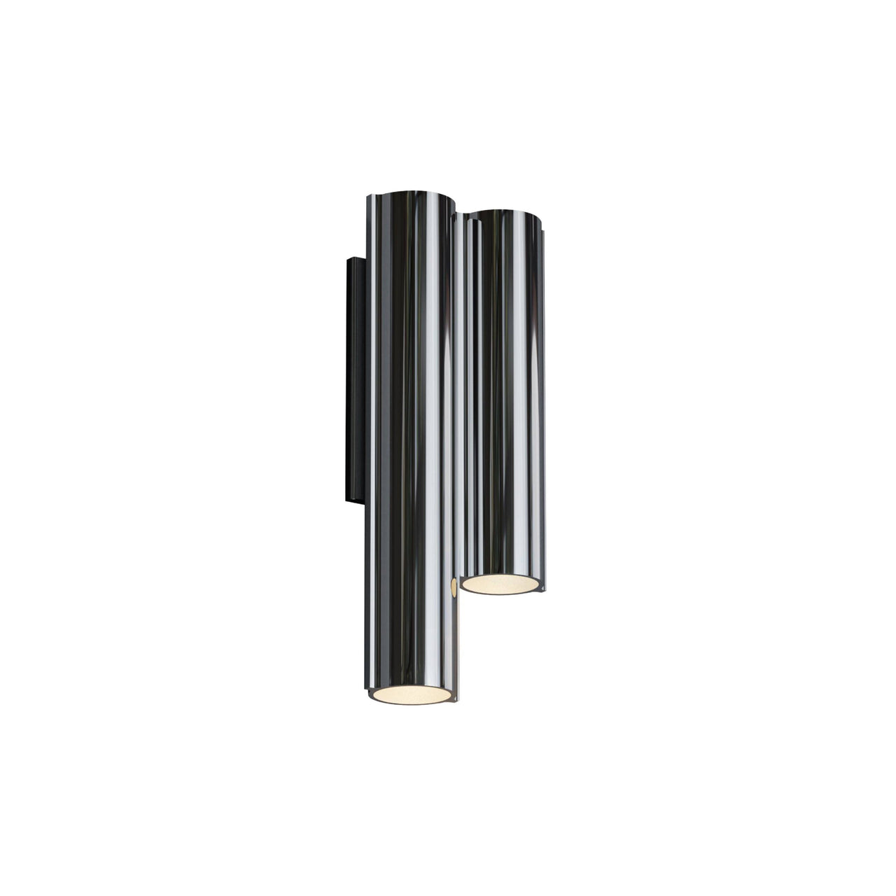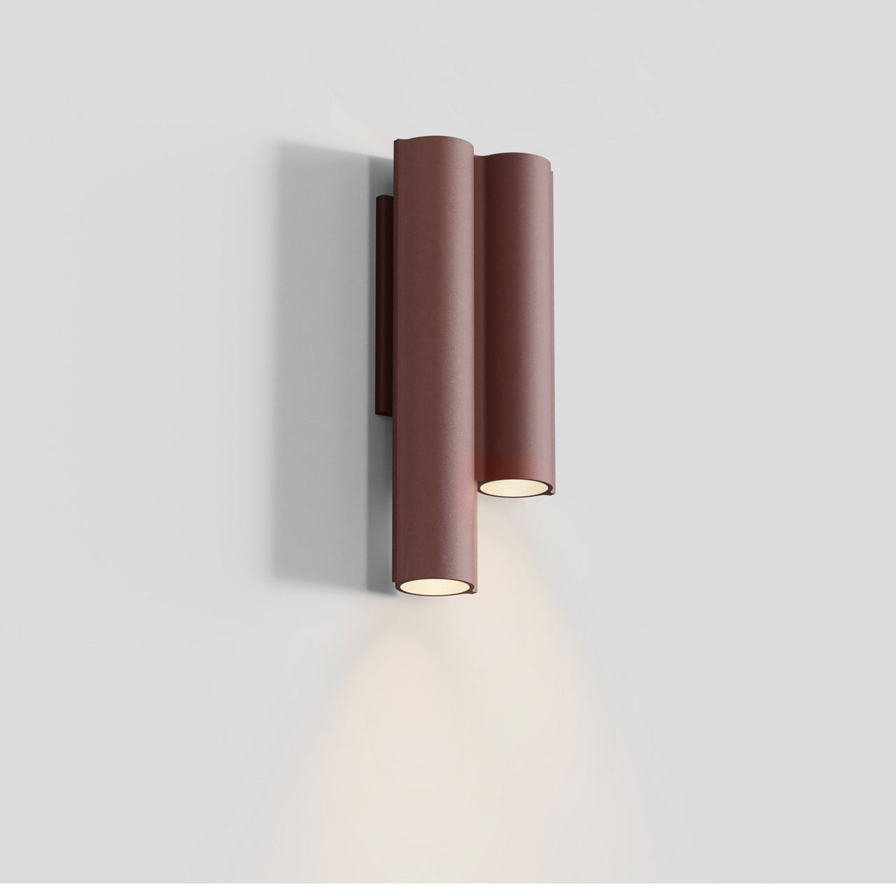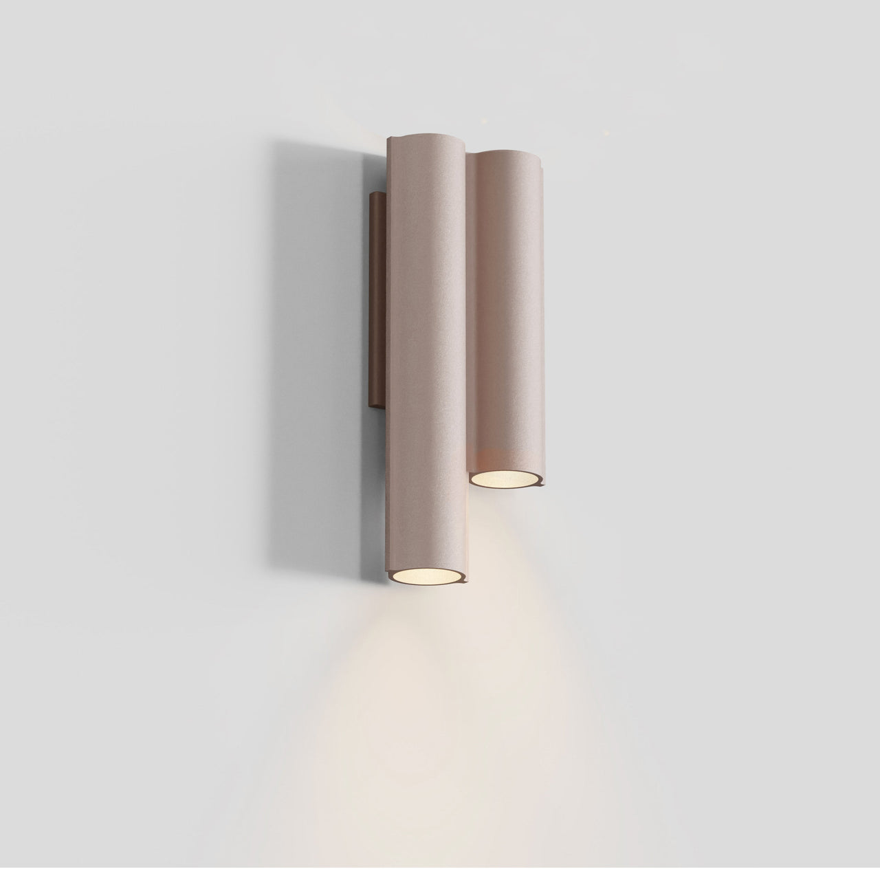 In an asymmetric formation supplied with downlight, Silo’s dual-channel 2WC provides direct illumination to place over desk, at bedside or next to a reading chair. The LED-powered wall fixture is made using custom aluminum extrusions and comes in a variety of metallic finishes as well as powder-coated options for a pop of color.