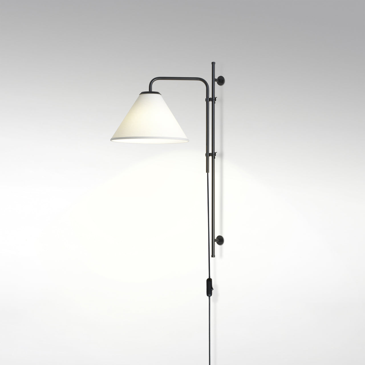 In this Funiculí version with a fabric shade, Marset refreshes its signature adjustable wall light. Designer Lluís Porqueras’ modern classic relies on a double-clip mechanism to set the height as needed while the shade can be positioned for either direct or indirect illumination. Heir to the original, the lamp’s cloth shade in sand or white filters the light for a wonderfully even, brighter glow.