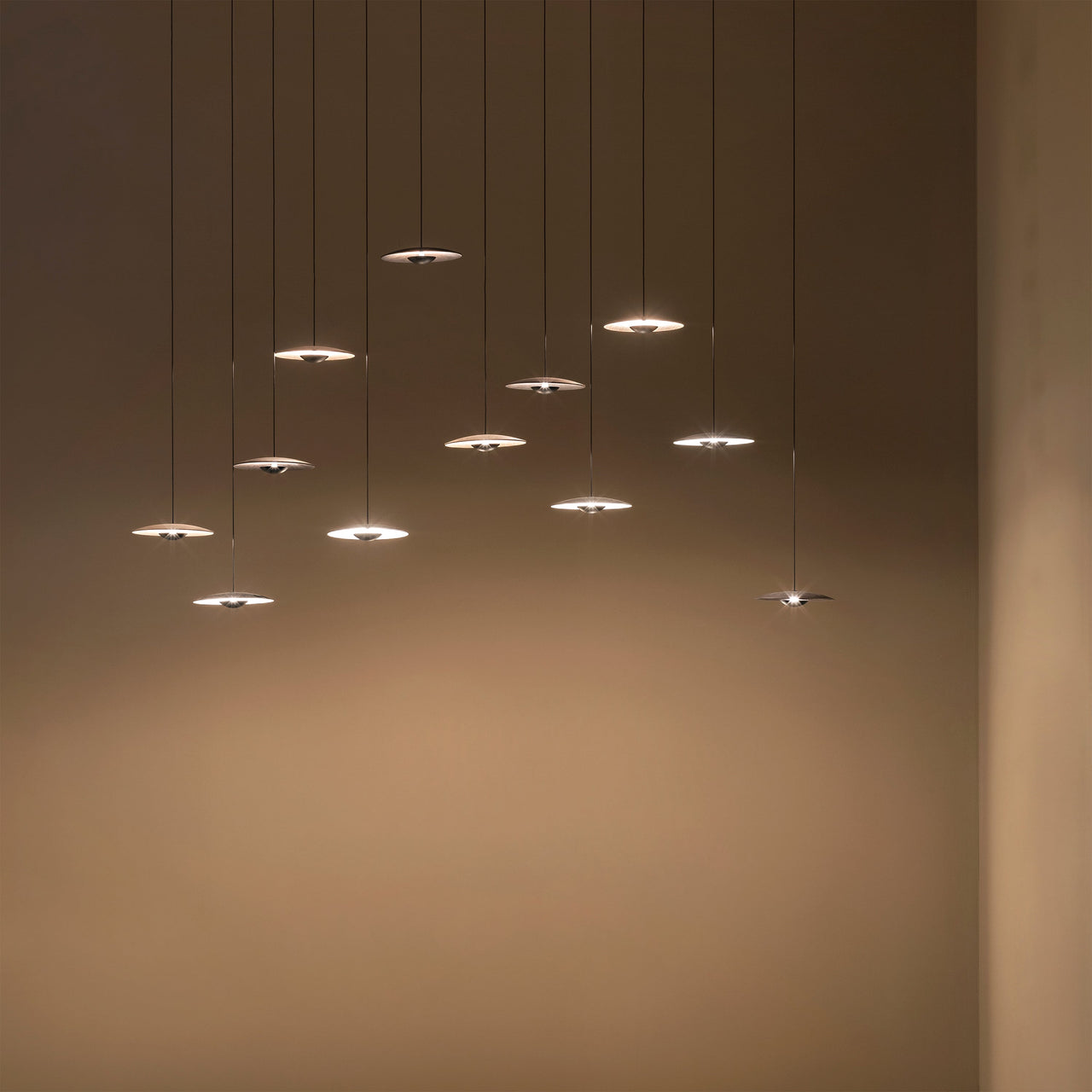 With metal versions joining the original pressed-wood Ginger, Marset’s LED pendant is also offered in a dramatic suspension trio. Joan Gaspar’s signature cymbal-like shade design nods to legendary drummer Ginger Baker of the 1960s rock band Cream. Beneath that refined curve, a flat diffuser with a white interior reflects the light for wonderfully even, non-glare illumination.