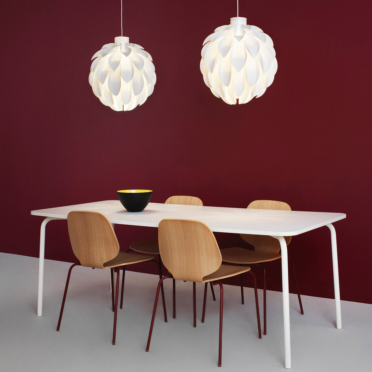 Designer Simon Karkov looks to nature and flowers for his sculptural pendant with its curved, leaf-like elements. Named for the year it was designed, Norm 12 is part of a series of self-assembly lamps from the long collaboration between Normann Copenhagen and the designer. Available in 2 sizes in classic pure white, the pendant spreads a mild and diffused light without glare and melds easily with many styles.