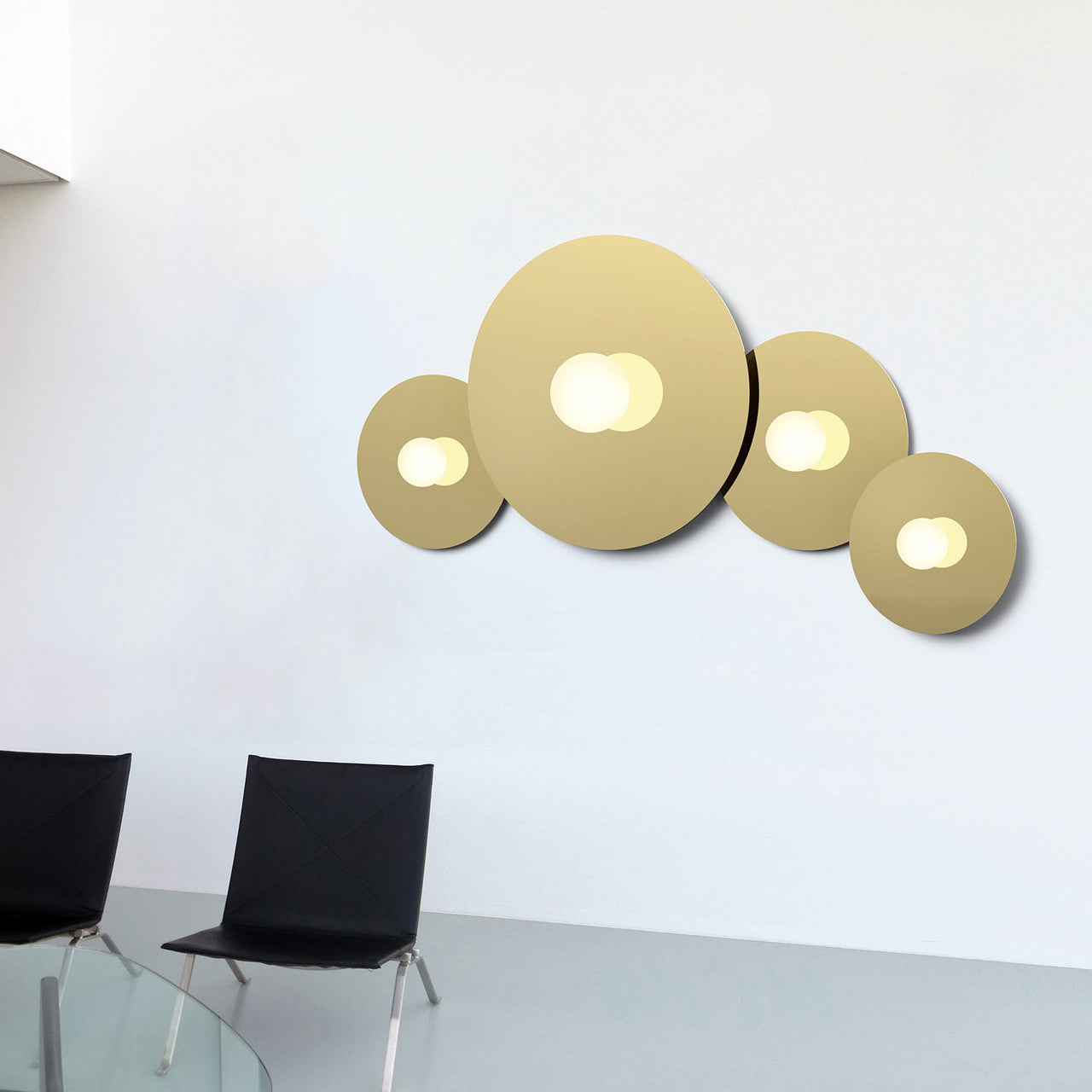 Bola Disc's seemingly magical combination of mirror and globe gets refined to the bare essentials in this version to mount on the ceiling or a wall. Providing both direct and reflected light, the advanced LED system gives the illusion of weightlessness by mirroring its surroundings. The elegant opaline glass globe diffuser is with a disk in in chrome, brass, rose gold or lacquered white finish. Striking on its own or mesmerizing in a grouping, as created by mixing any of the 4 different sizes together.