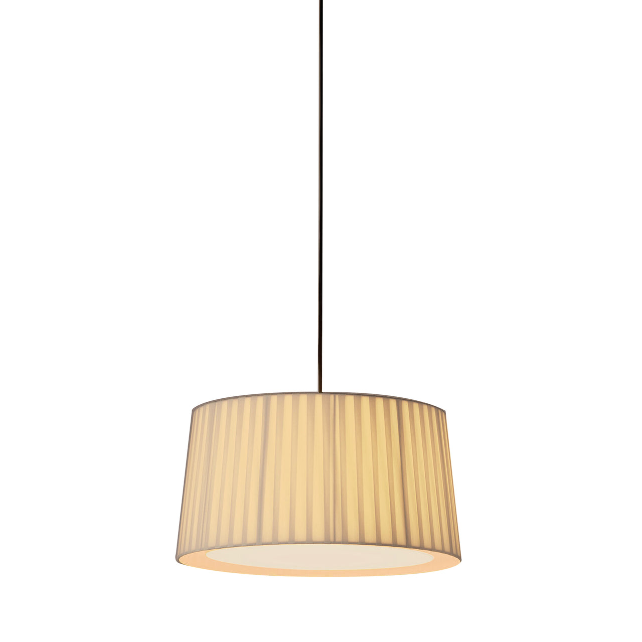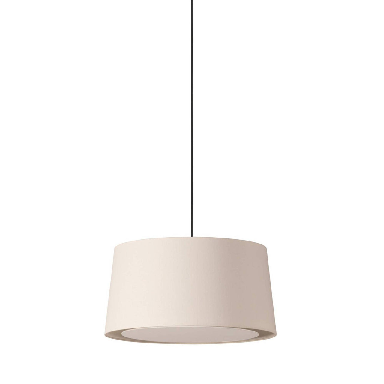 Slightly smaller than its sibling GT5 pendant, GT6 is part of the pair designed for mid-size public settings and larger rooms in the home. Featuring Santa & Cole's signature suspended shade, it comes in the Barcelona brand's hand-fashioned ribbon in a range of accent colors or a crisp white linen version. Either way, the fixture brings glare-free LED illumination to any setting, filtered through a translucent white PVC diffuser and it offers a choice of black or white cord and varied ceiling canopies.