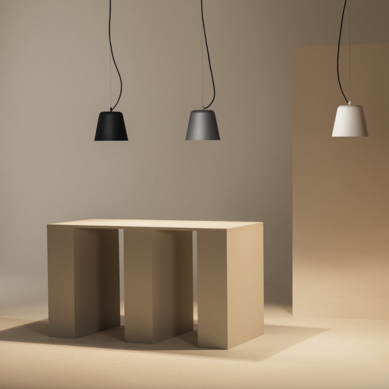 London-based studio Industrial Facility partners Sam Hecht and Kim Colin team up with Barcelona’s Santa & Cole on a fresh but timeless take on a conical-shaped pendant. Pleasing to the eye, but also solid and elementary, Vaso serves equally well as a single fixture or a cluster in both residential and commercial environs. With an integrated LED, the matte aluminium injection structure comes in white, black and aluminium grey, with a tempered glass cover.