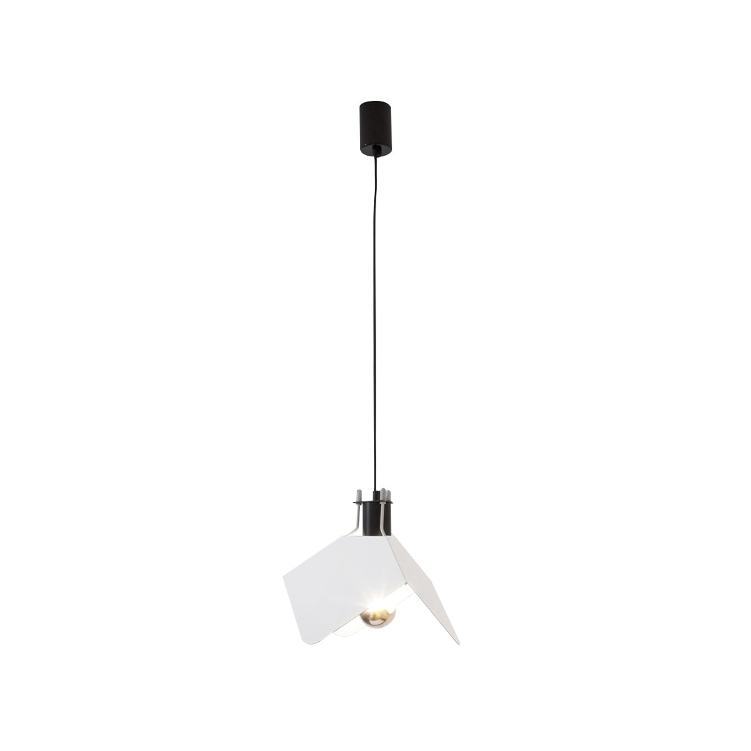 Suggested by the chic utility of a photo studio, Triedro’s pendant version features a folded metal lampshade to reflect the light downward without creating glare. From Joe Colombo’s enduring 1970 series, it’s updated with a silver-domed LED bulb inside the glossy white-painted shade and complemented by a black suspension cable and fittings.