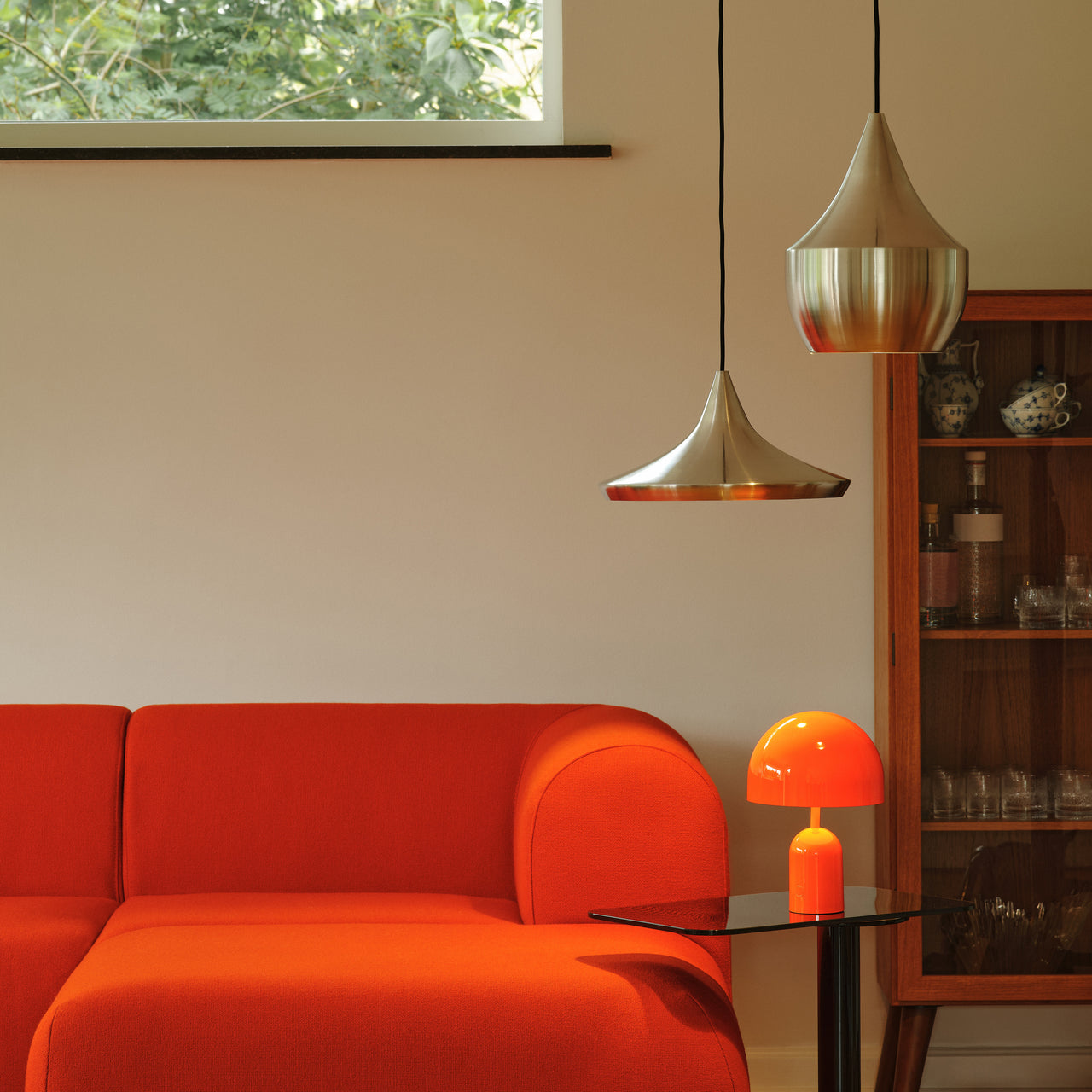 The Unbeaten Fat Pendant from Tom Dixon builds on the iconic Beat series with a distinctive silhouette, crafted from hand-spun and brushed aluminum. Designed and made in Moradabad, India, it reflects traditional metalworking techniques while incorporating modern lighting technology. The integrated LED module provides efficient illumination with a warm 3000K color temperature and a brightness of 800 lumens.