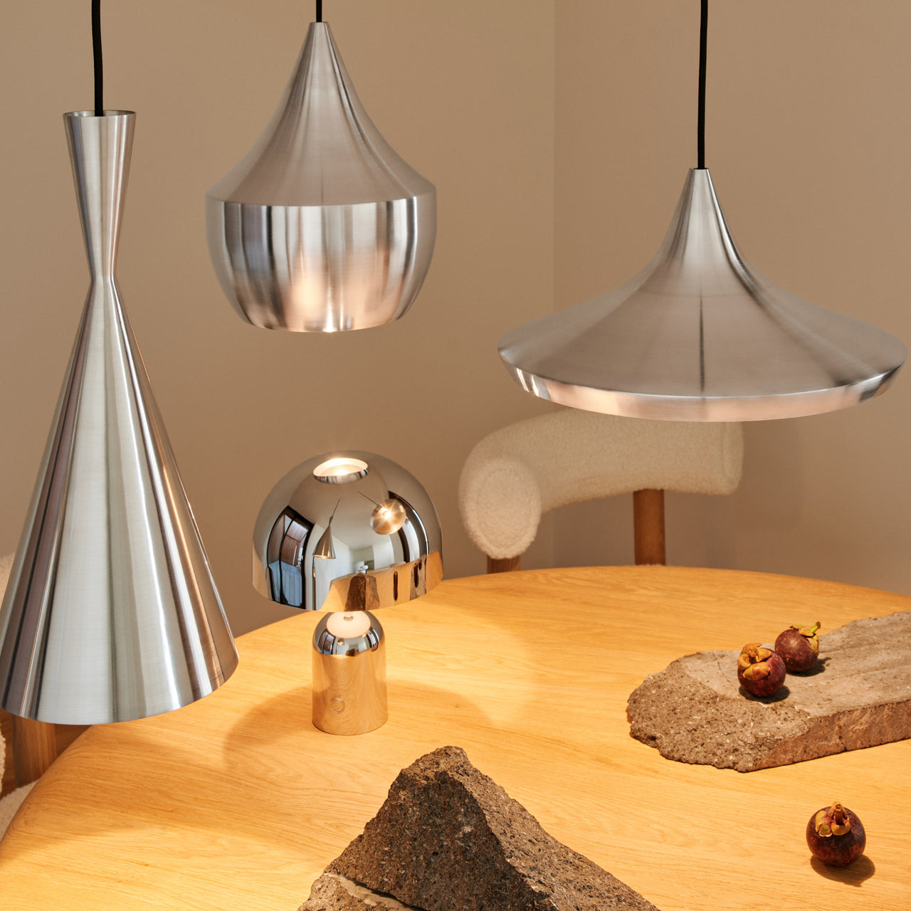 Tom Dixon is synonymous with the idiosyncratic sensibilities that inform so much of British aesthetics, yet by a beat all his own. He challenges with his use of materials in unexpected applications, and reworkings of otherwise conventional classics into elegant gems. His remarkable creative output covers a wide swath of categories, among them at A+R, his lighting, furniture, décor, tabletop and barware. Tom also manages to extend his exhaustive vision to hotels, restaurants—including his own at this wonderful campus at the Coal Drops Yard in King’s Cross—and the odd home. For good reason this OBE’s design work now resides in the collections of the V&A, MoMA and the Pompidou.