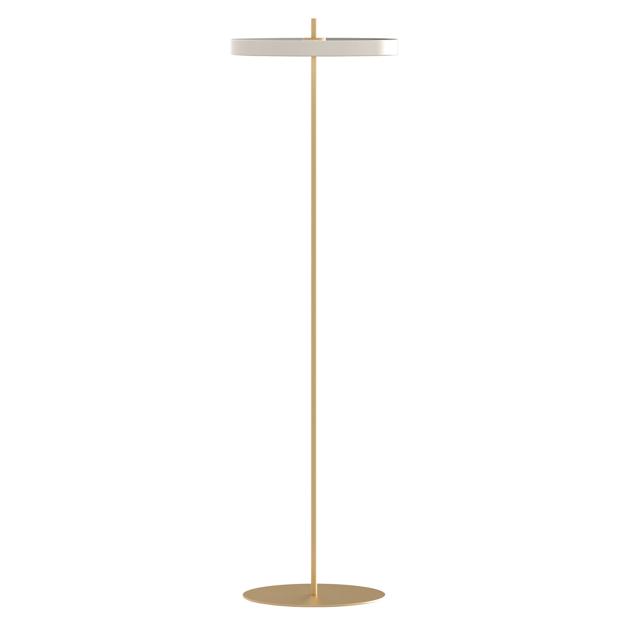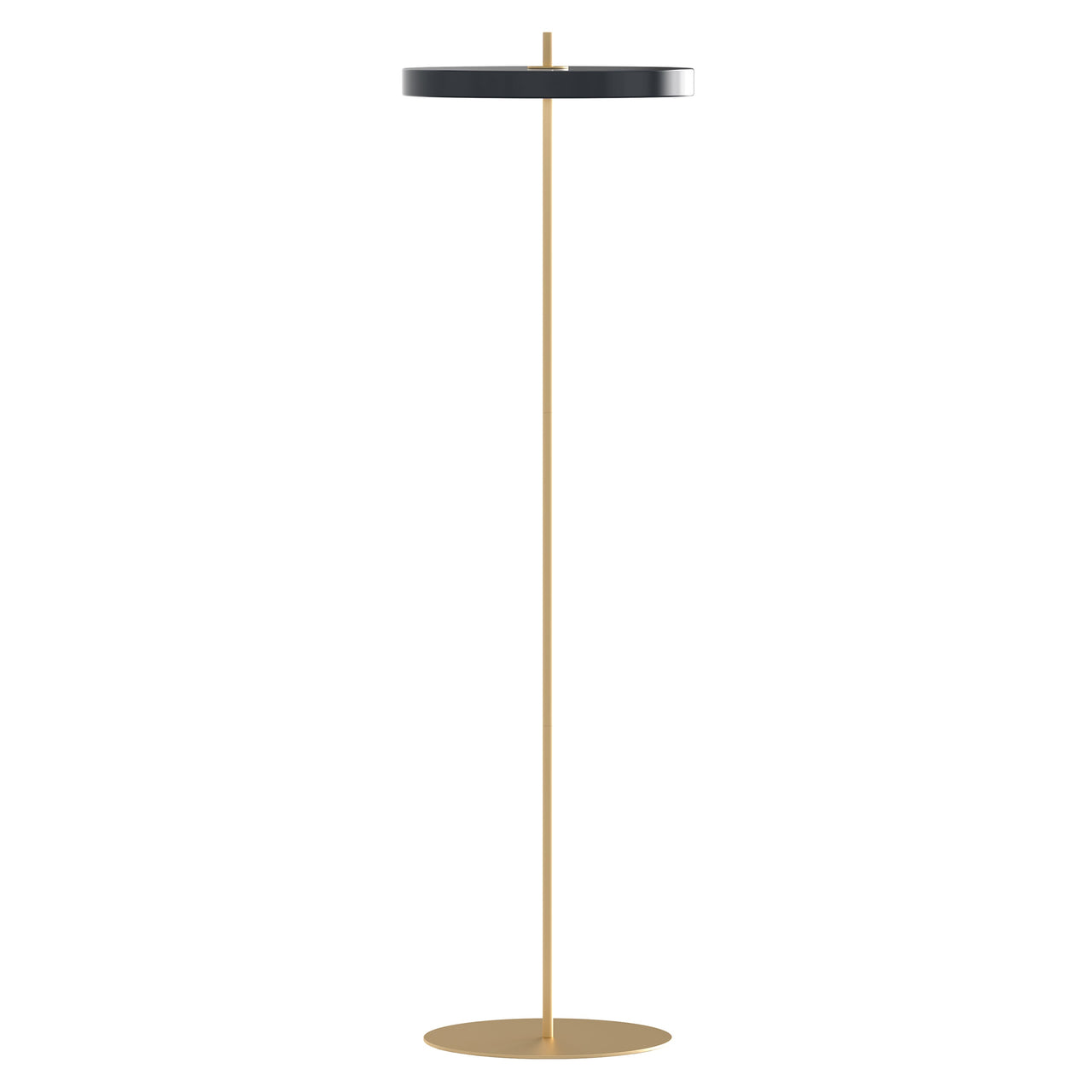 A striking arrangement of 2 circles bisected by a simple rod is all there is to it with Umage cofounder and creative chief Sřren Ravn Christensen's timeless floor lamp. But Asteria is also a marvel of LED technology along with its appealingly minimal shape, featuring a white diffuser that ensures resoundingly soft illumination in the surrounding space. A brass base and stem complement the range of lamp colors and simply twisting the top part of the stem easily turns the light on and off.