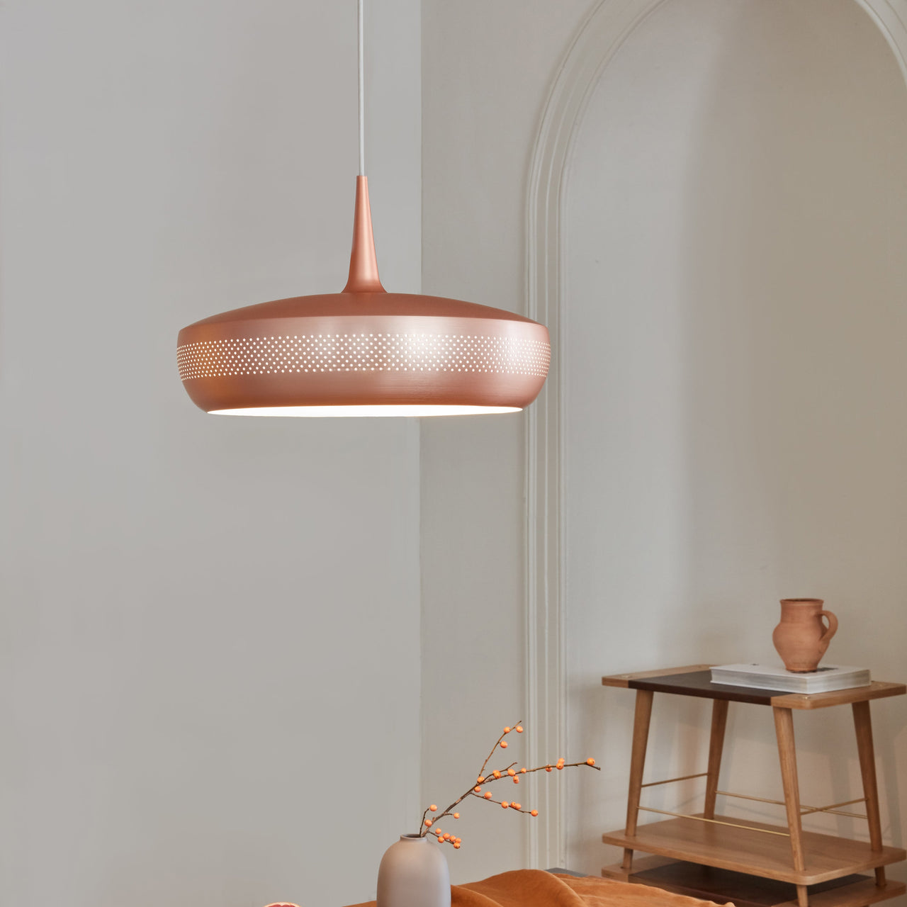 As the name implies, Dine is a larger, more dramatic version of Copenhagen maker Umage's original Clava pendantand especially apropos for dining rooms and hospitality spaces. The partially perforated metallic surface creates a sparkling halo of ambient light to accompany the downward-directed illumination. Designed by Denmark's Soren Ravn Christensen, Clava ships flat-packed, an eco-friendly priority for the Umage brand.