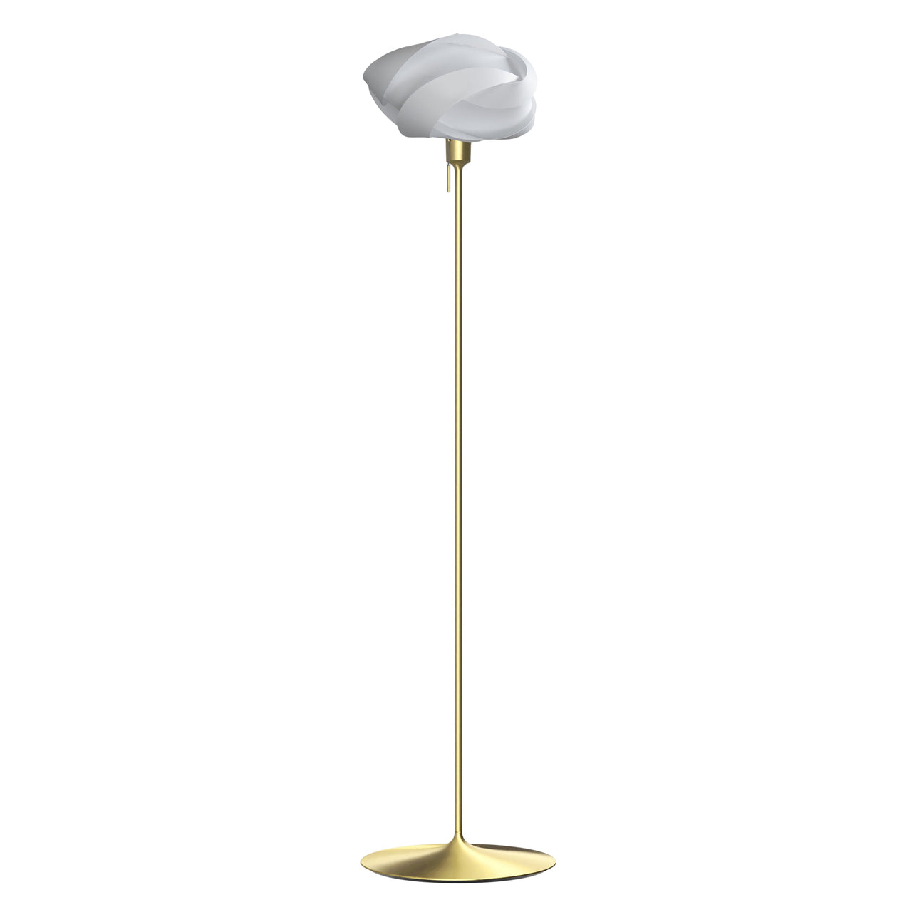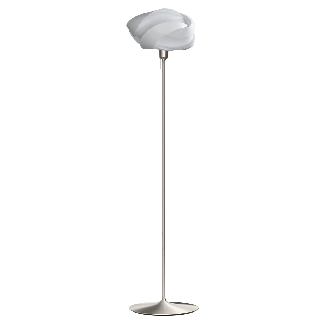 Elegantly situated on its slim base inspired by the shape of a champagne flute, Ribbon's floor lamp version wows with its strikingly interwoven curves. Translucent polypropylene bands undulate in a mesmerizing whirl, lending a warm LED glow when turned on and displaying a sculptural presence when switched off. Lorenzo Radaelli's shade comes in mini or medium sizes to pair with the slender floor stand in a selection of refined metallic finishes.