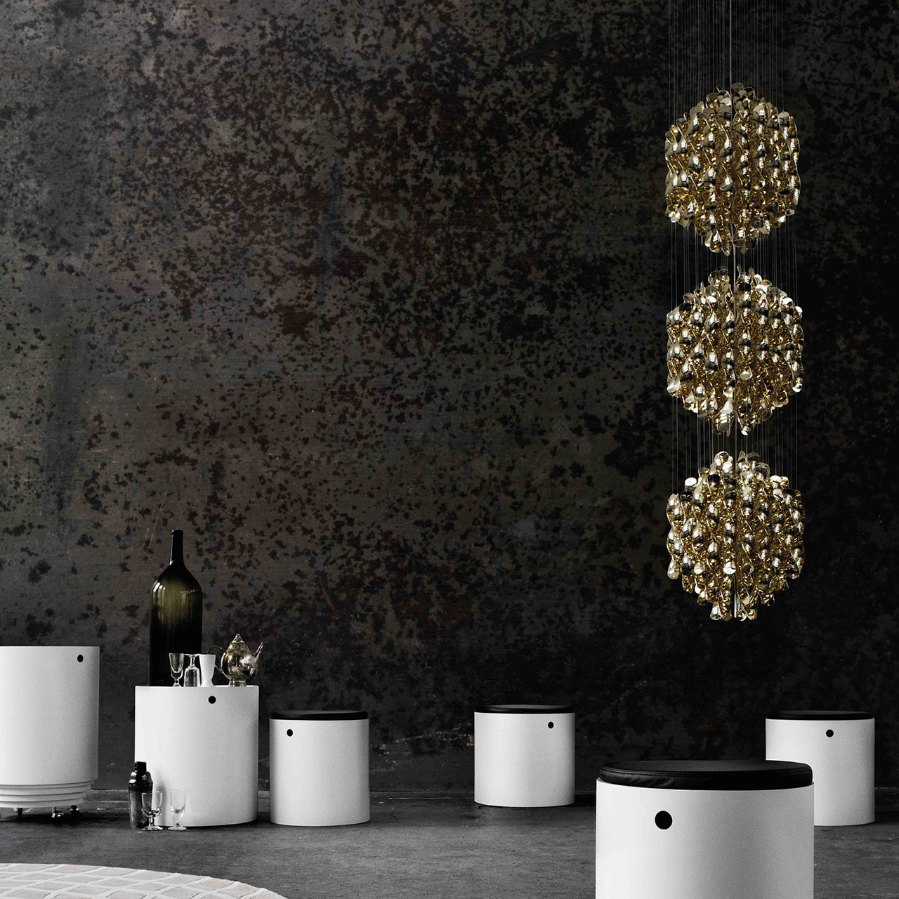 Good things come in threes, it is said, and this spectacular pendant certainly proves the point. Danish design giant Verner Panton broke new ground with his 1968 Spiral series, treating cast plastic glossed in silver as a luxury material. Multiplying the shiny clusters by a factor of 3, the dramatic expanse of light and shadow is taken to its ultimate proportions.