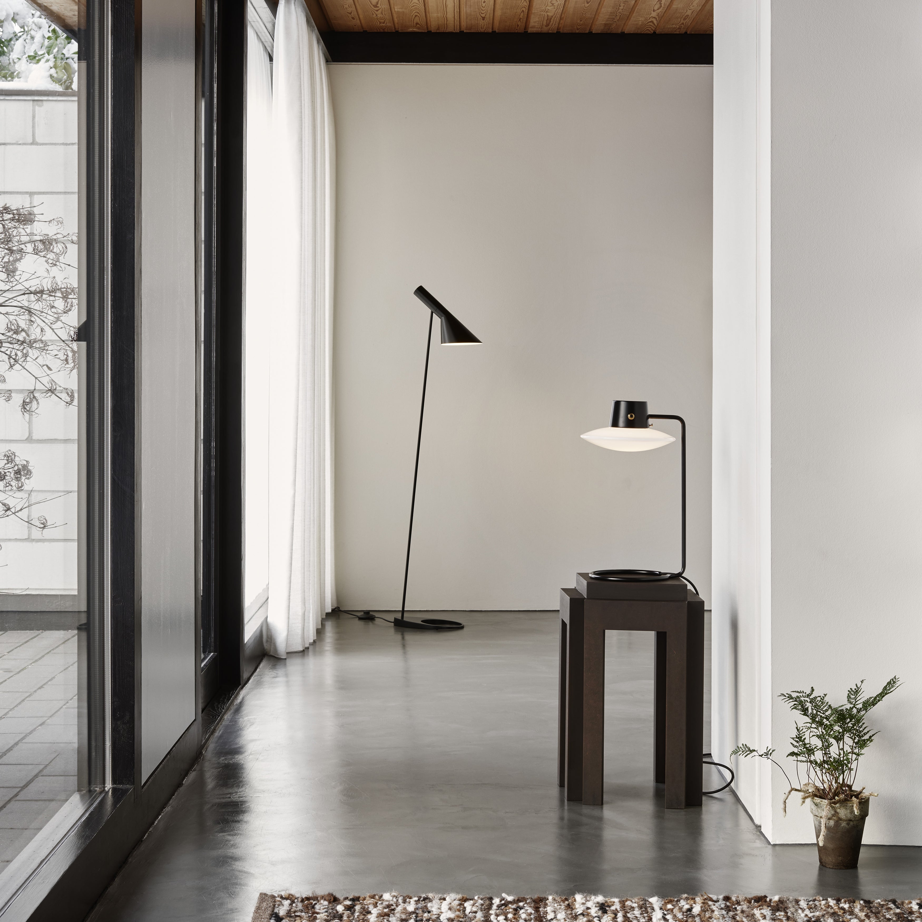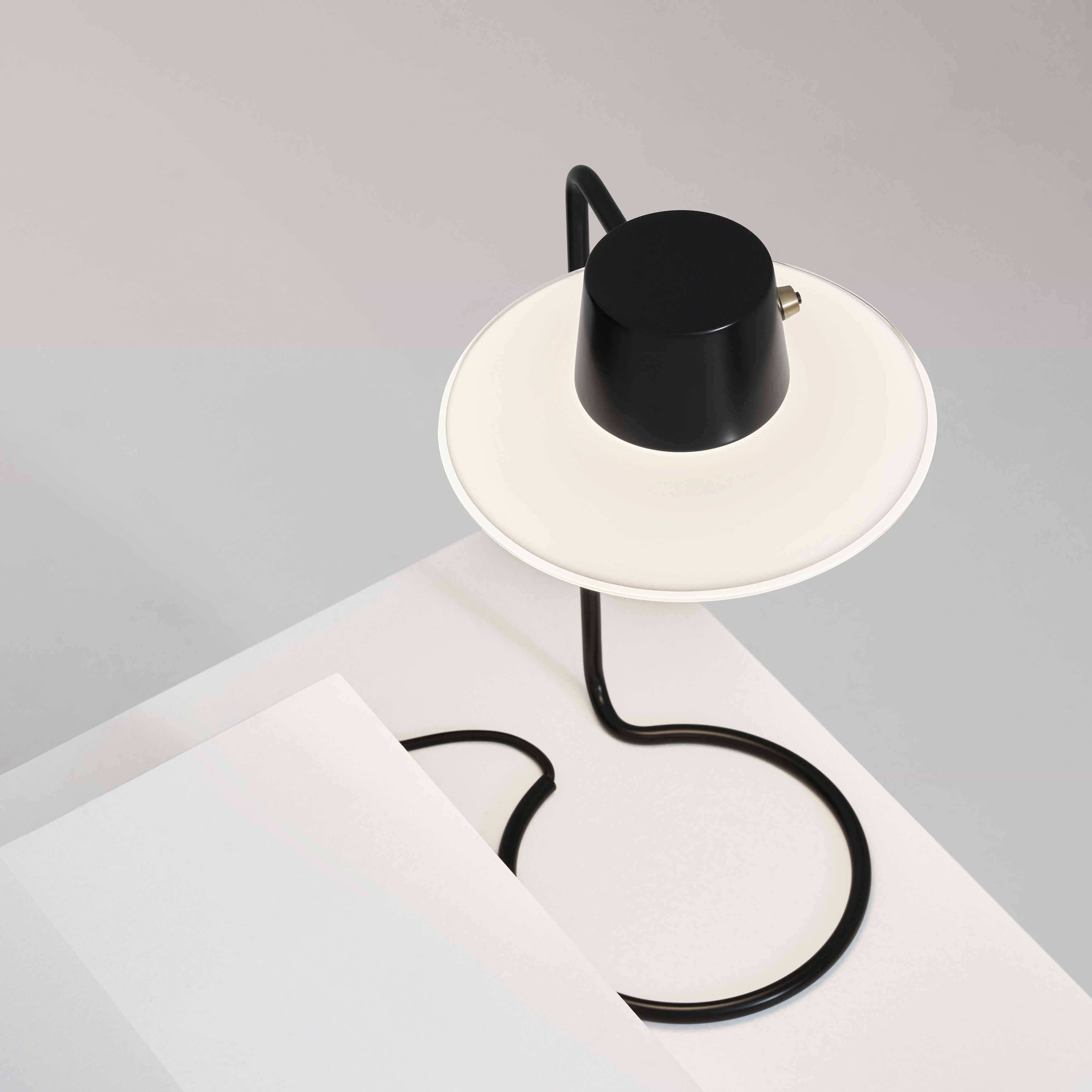 Originally designed by Arne Jacobsen in 1962 for St. Catherine’s College at Oxford, the AJ Oxford Table Lamp’s sleek, graphic design reflects the modernist architecture of the college, creating a striking contrast with the classical surroundings of the University. The lamp features a slim stem and a circular base, available in several variants, including different heights and with or without a metal top shade.