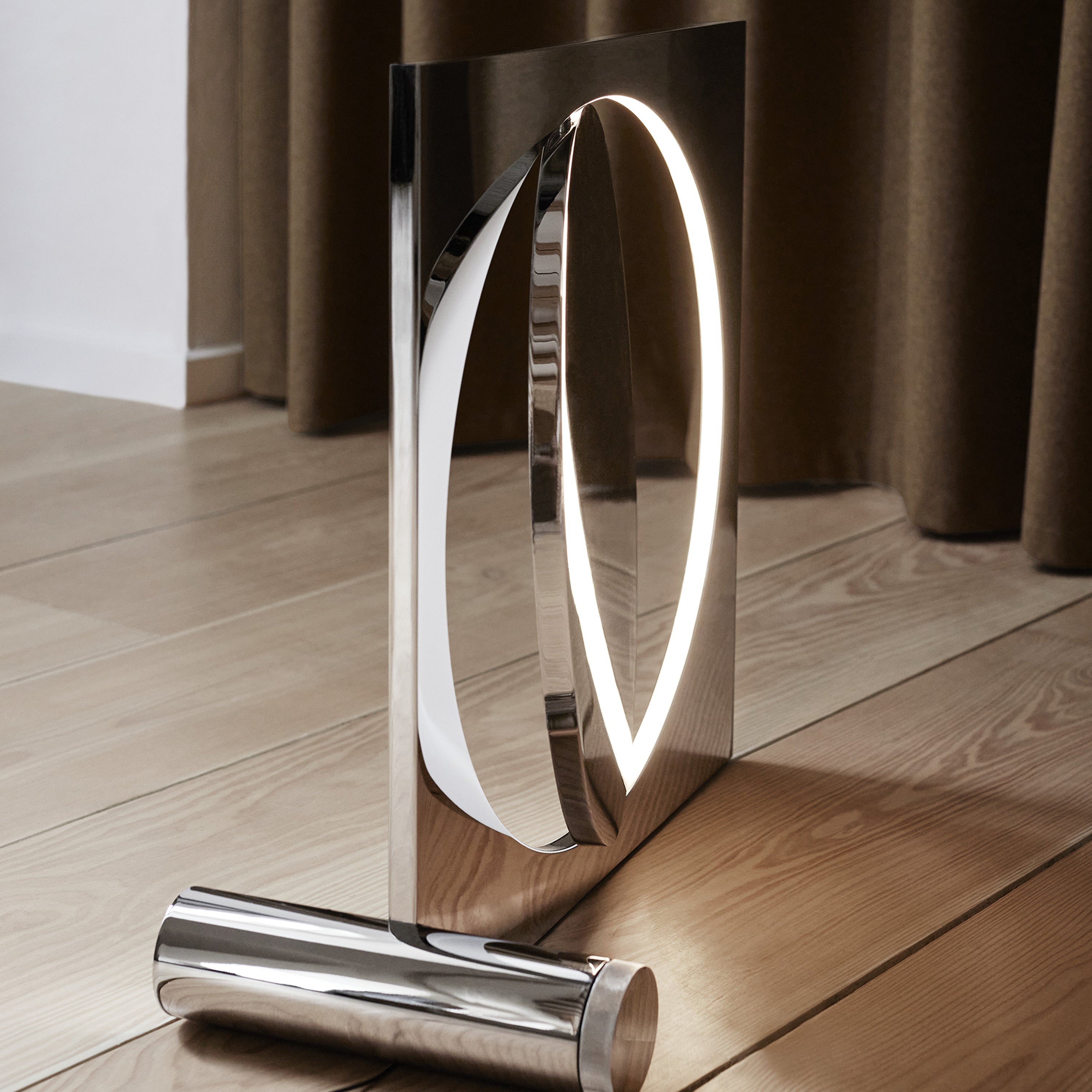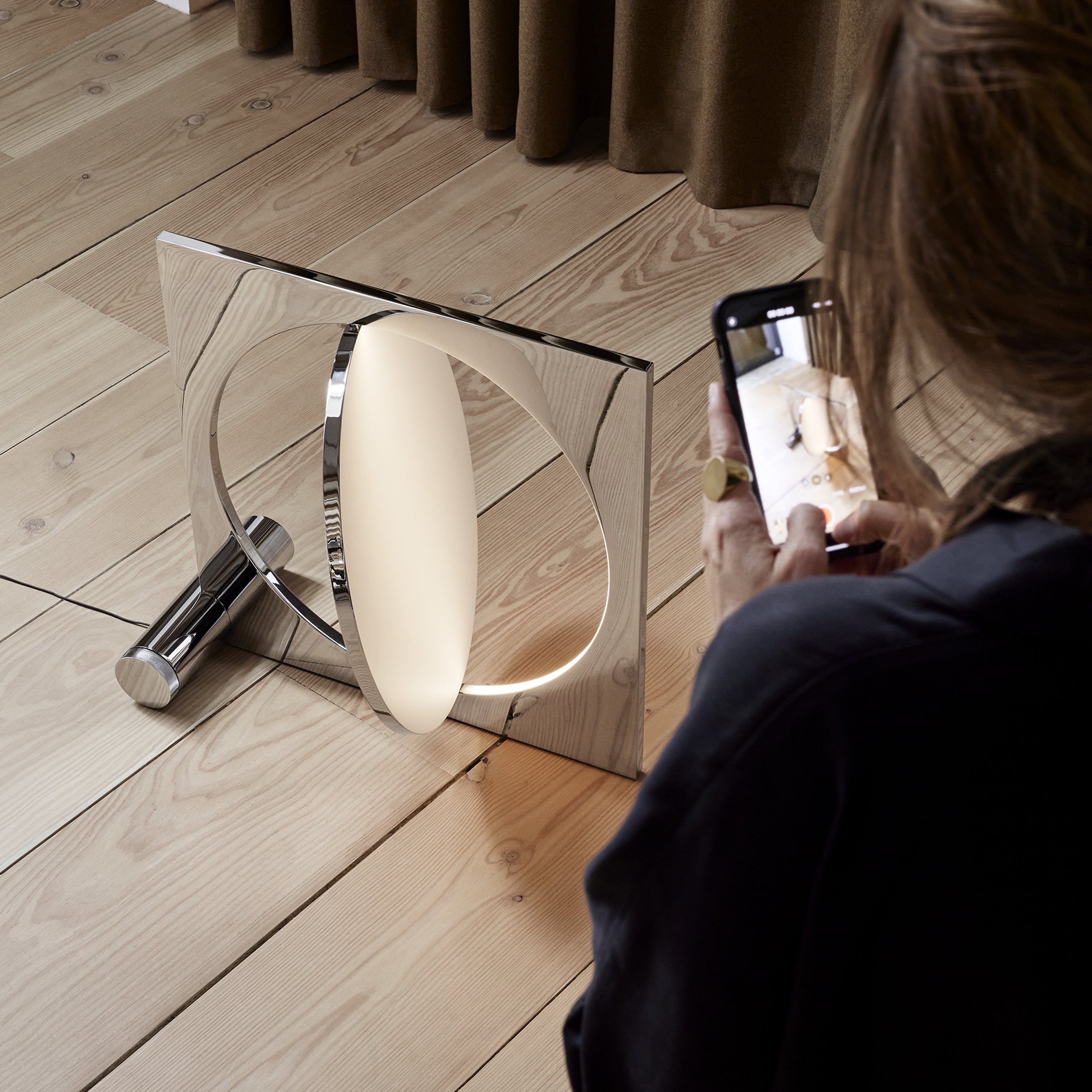 The Moonsetter floor lamp by Louis Poulsen stands out with its playful approach to light and reflection. Its 360° rotating disc, one side reflective and the other white, lets you control both the light’s diffusion and the room’s ambiance. Designed by Anne Boysen, it blends sculptural artistry with function, capturing a moonlit feel inspired by her experiments with surfaces and reflections. Each piece is part of a limited run of 100, making it a rare addition to any space, and a testament to Boysen's expertise in spatial design.