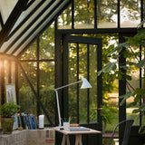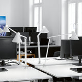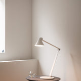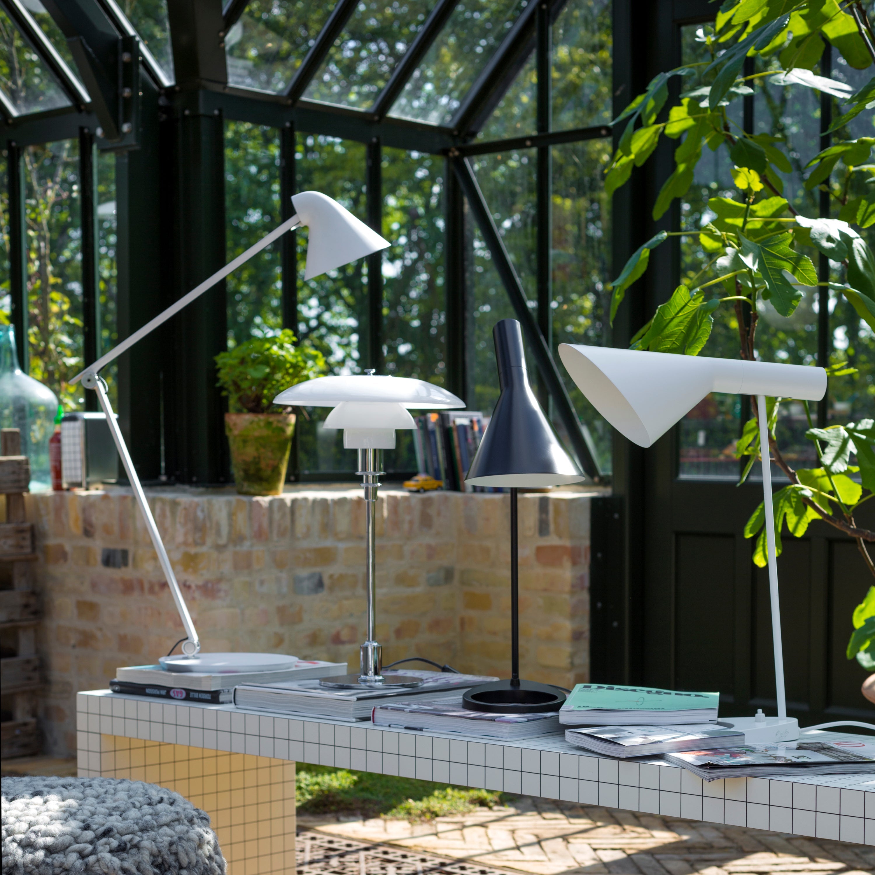 The NJP Table Lamp by Louis Poulsen, designed by Oki Sato of Nendo, reimagines the classic anglepoise lamp for modern living. Its sleek, adjustable design is perfect for reading or task lighting, with a flexible head and arms that allow for precise light placement. The lamp features an integrated LED light source, thoughtfully positioned to reduce glare. A unique chimney-shaped head also reflects light backwards, subtly illuminating the top of the arm while dissipating heat.