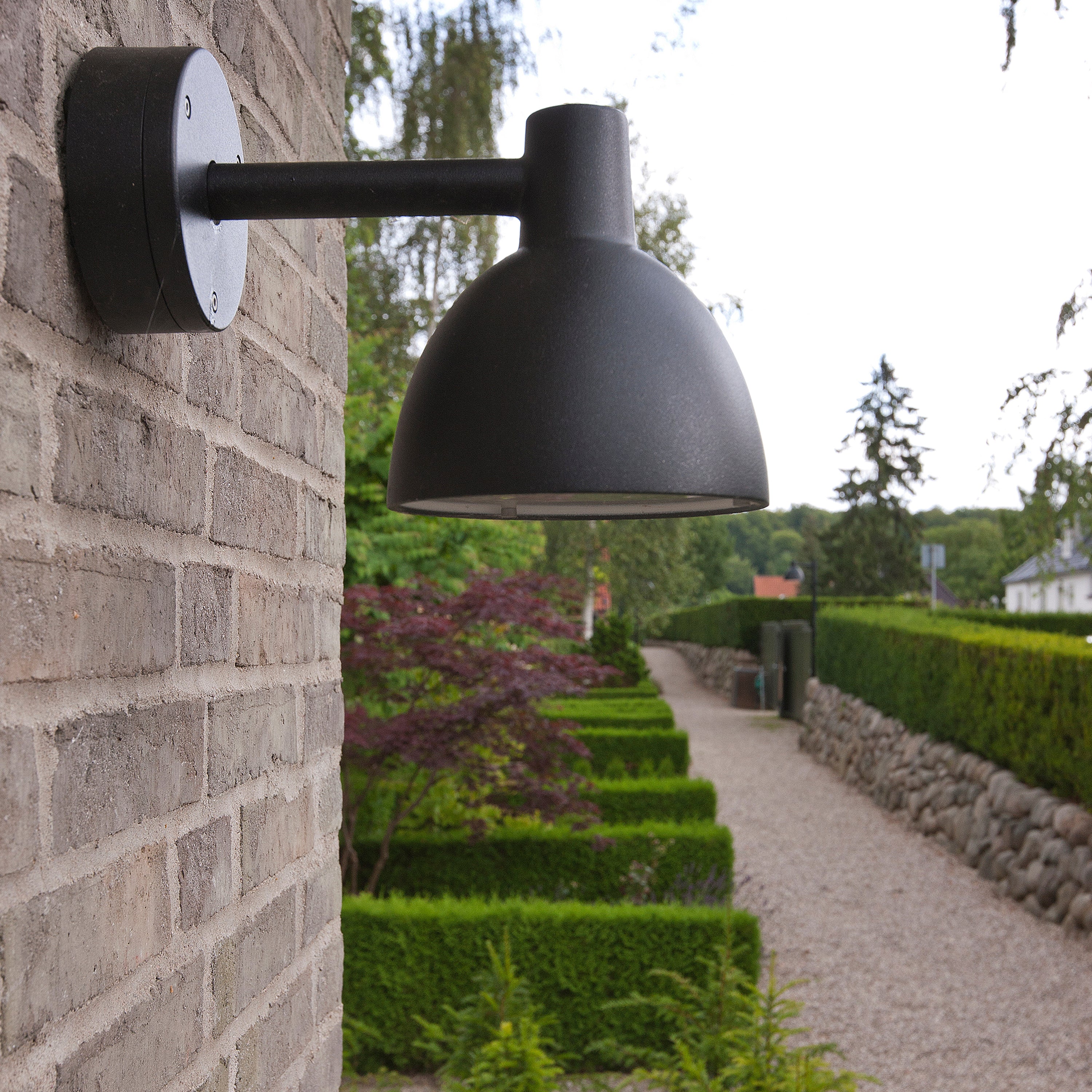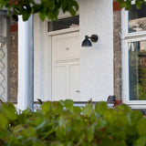 The Toldbod Outdoor Wall Lamp features a design based on the PH Ellipse reflector. The outdoor lamp features a matte white painted interior, ensuring a soft and comfortable light output. It is constructed from durable materials such as die-cast aluminum and tempered, sandblasted glass, available in finishes like natural aluminum and black.