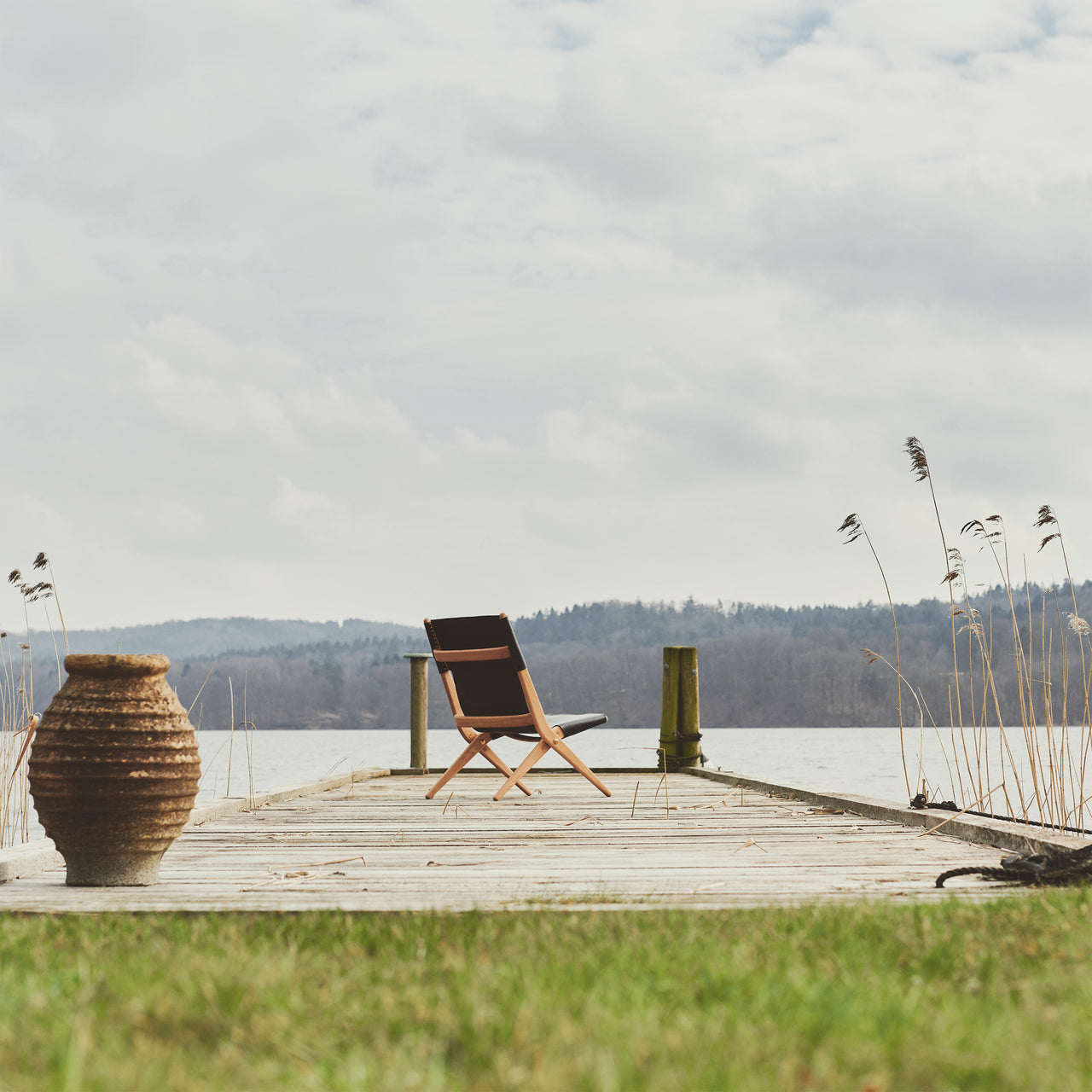 Visionary designer and architect Mogens Lassen’s 1955 Saxe is a striking collapsible lounge chair with a solid-oak frame and a dramatic leather slung seat. Originally designed for a Copenhagen Cabinetmakers’ Guild contest, nothing in the chair’s DNA is left to chance, even to the typically iconoclastic Lassen twist of discreet brass fittings at the seat's back.