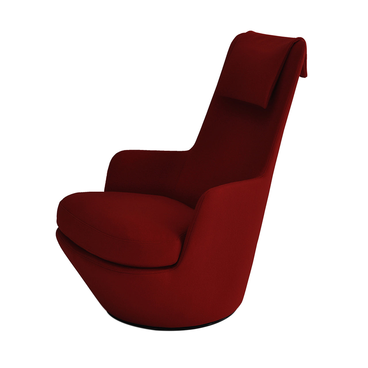 This proudly high-back version of Bensen’s series of swivel lounge chairs starts with the signature circular metal base that rotates smoothly a complete 360 degrees. Hi Turn offers comfort aplenty with the combination of an internal steel frame, injection molded cold foam and a cushiony soft down seat. The chair has an impressively tailored look but the fabric covers are handily attached by velcro and are easily removed for cleaning or replacement.