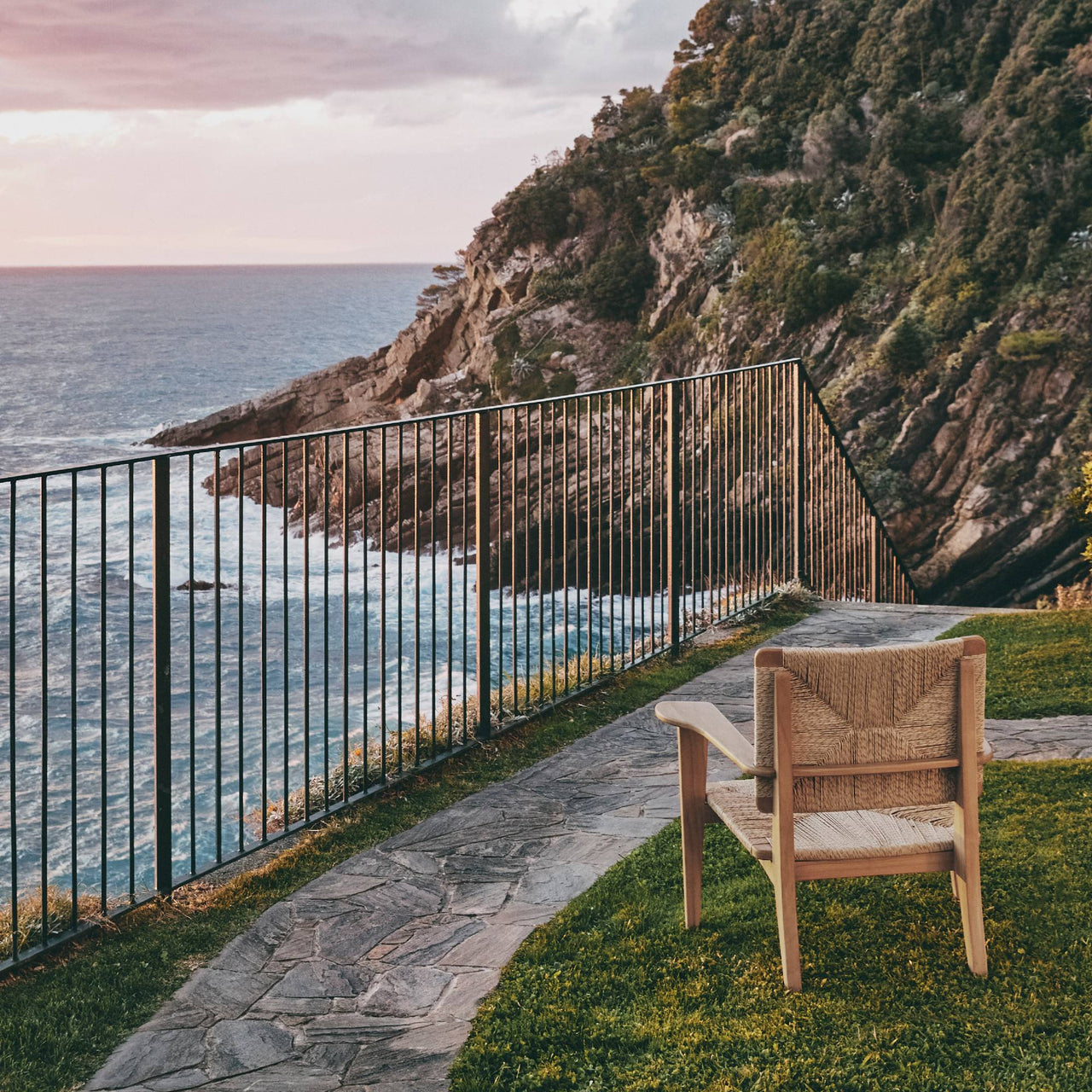 With a relaxed incline and paddle-shaped armrests, together with its woven seat which widens at the front, Gubi resurrects a little-known gem from post-war French designer Marcel Gascoin in an alfresco version. First appearing in 1949 but never produced at scale, F-Chair combines a hardwearing and naturally durable teak frame with a harmonious interlocking of the armrests, rear legs and backrest that takes a particularly high level of craftsmanship along with a weatherproof woven-cord seat inspired by the designer’s nautical upbringing. Teak makes the perfect material choice with its naturally high oil content that allows it to stay in fantastic condition in even the harshest of climates, developing a beautiful silvery patina over time.