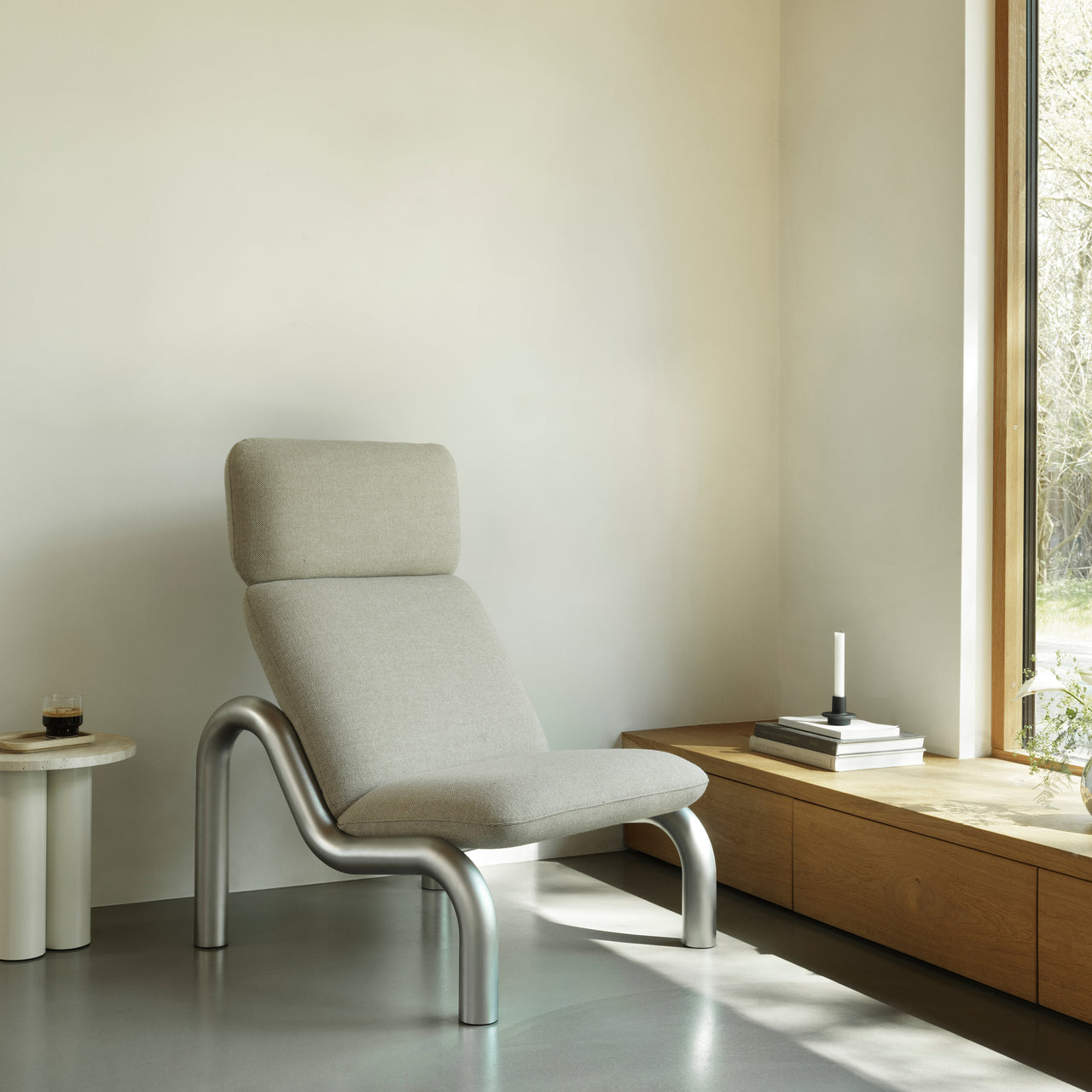 The Tube Lounge Chair is a bold design inspired by the Memphis design movement of the 1980s, known for its playful geometry and vibrant forms. Designed by Simon Legald, the chair combines this exuberant style with the minimalist sensibility of Danish design. This lounge chair features a striking tubular steel frame that bends to complement the plush, generously padded seat.