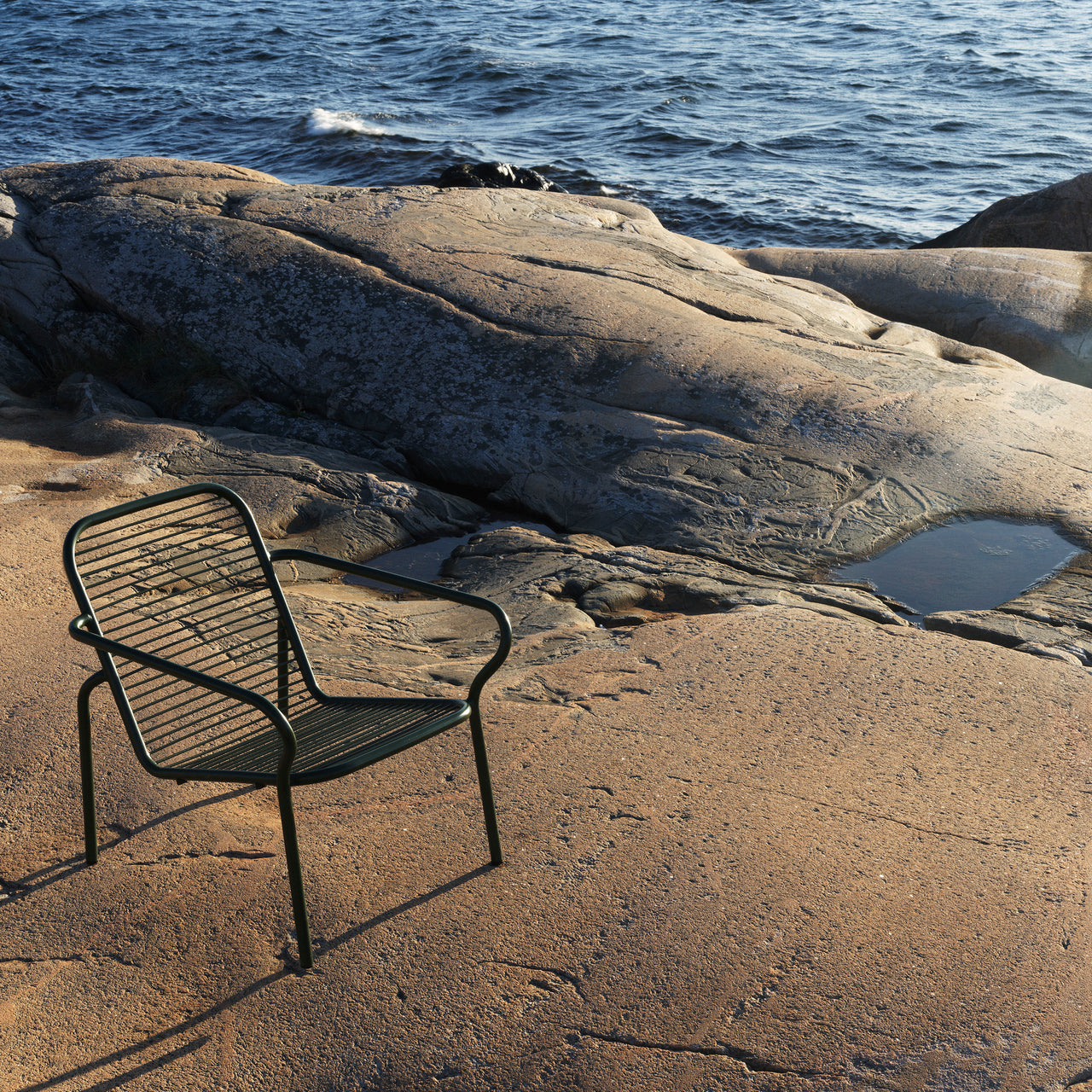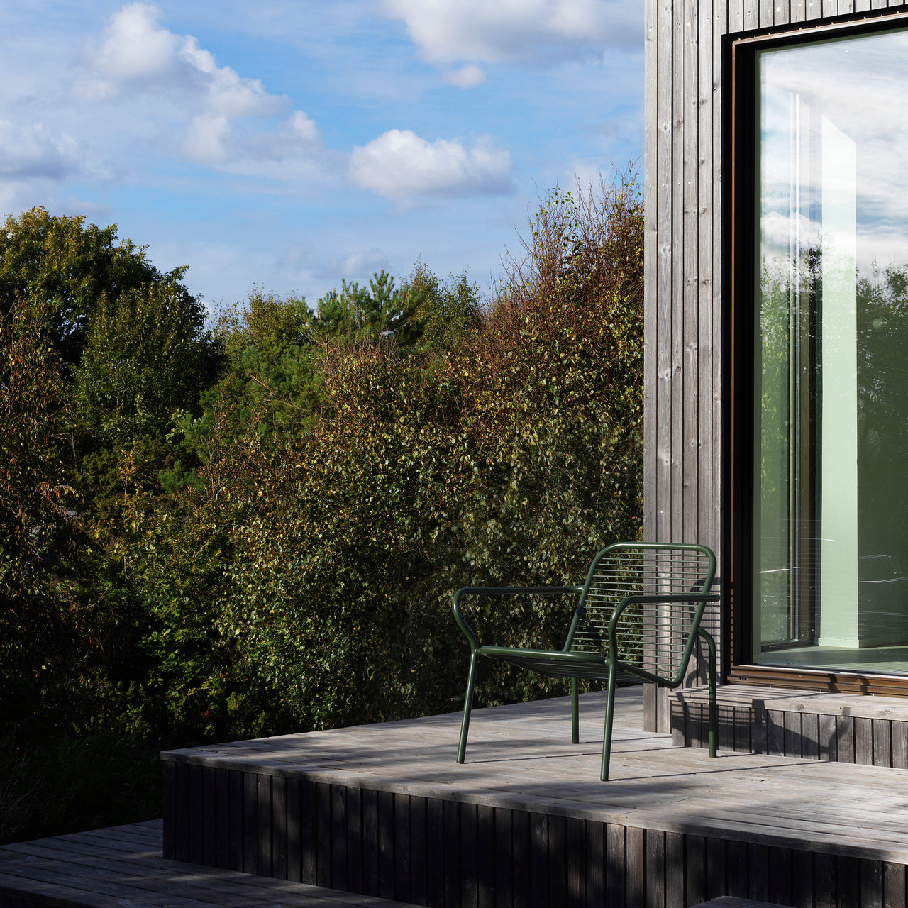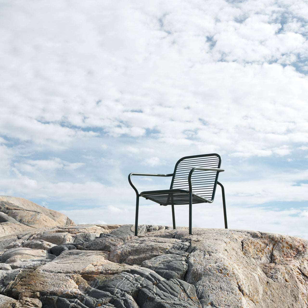 The Vig Stacking Lounge Chair is a versatile outdoor seating option crafted from durable double powder-coated steel, making it ideal for extended outdoor use while maintaining its sleek appearance. Its stackable design makes it highly functional for flexible seating arrangements. Available in colors black, grey, and dark green, the Vig collection offers a cohesive collection of outdoor furniture.