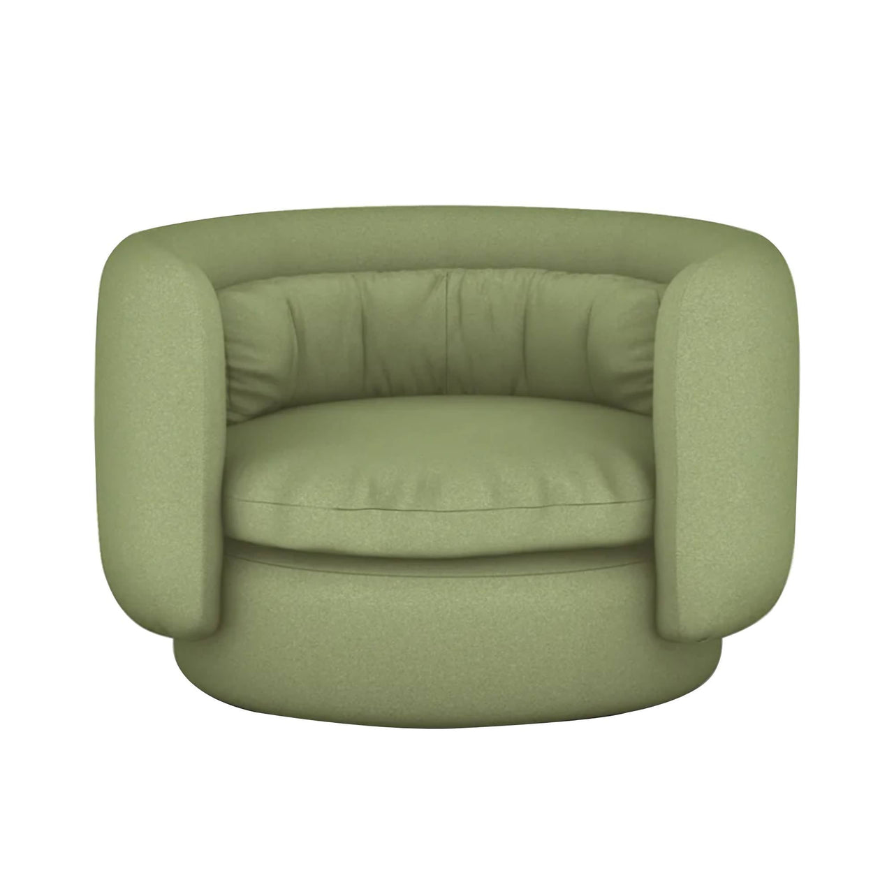 Coming full circle, designer de jour Philippe Malouin's armchair relies on primary geometry for its rounded contours. Group's signal piece — the seating is wonderfully comfortable and cosseting — is shaped with multi-density foam and a foam-core and feather-wrap cushion, with a premium range of upholstery choices. Both a formal version with a slightly higher seat and back and narrower seat and a standard version are available with a fixed, 360 swivel or swivel-return base. Made in Norfolk, England.