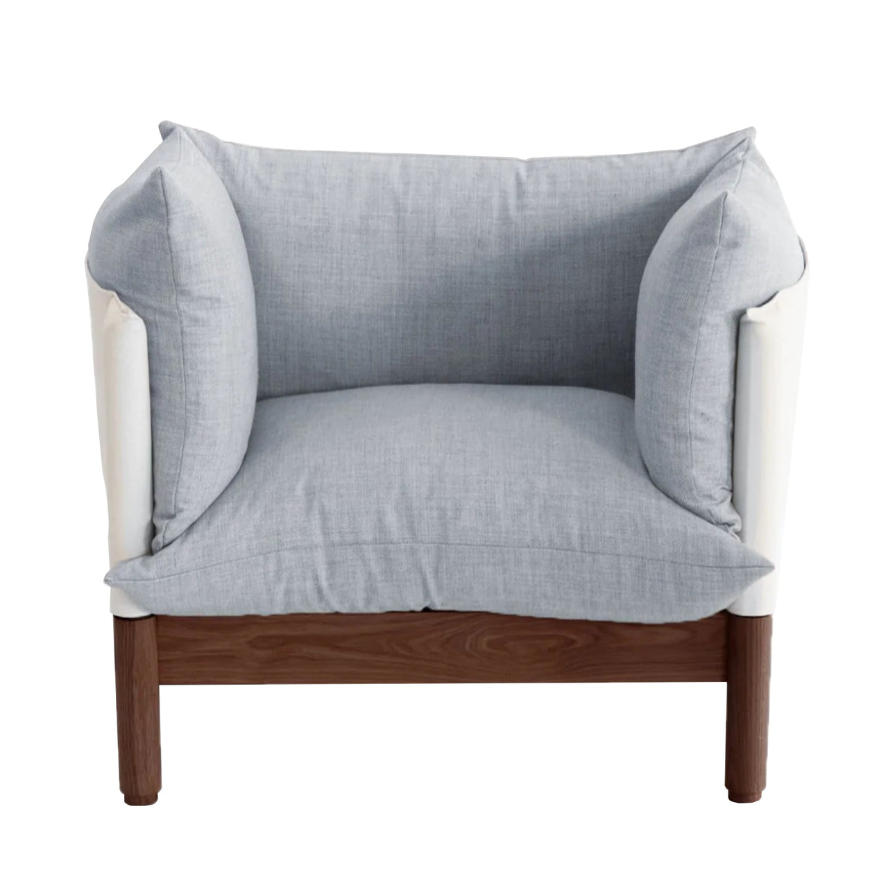 Inspired by the simplicity of the common hammock, Tepee’s upholstered armchair features a solid oak or walnut frame with cylindrical legs and a heavy cotton-canvas sling structure. Designer Lucy Kurrein reinterprets typical seating with her clever use of the strong industrial fabric, available in natural or black. Seat and back cushions with feather fill offer upholstery choices in a range of fine textiles and leather. Made in Norfolk, England.
