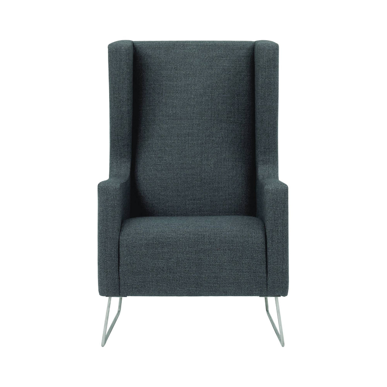 For the first of his modernizing reinterpretations of the traditional high-backed chair, British designer Matthew Hilton calls for a sleek sledge base in stainless steel and square arms to match the seating's angular proportions. Maintaining a formal look while providing extra support and comfort, Wing 1's sharply defined contours offer a wide range of fine upholstery choices. Made at London brand SCP’s specialist upholstery factory in Norfolk, England, using natural and sustainable materials.