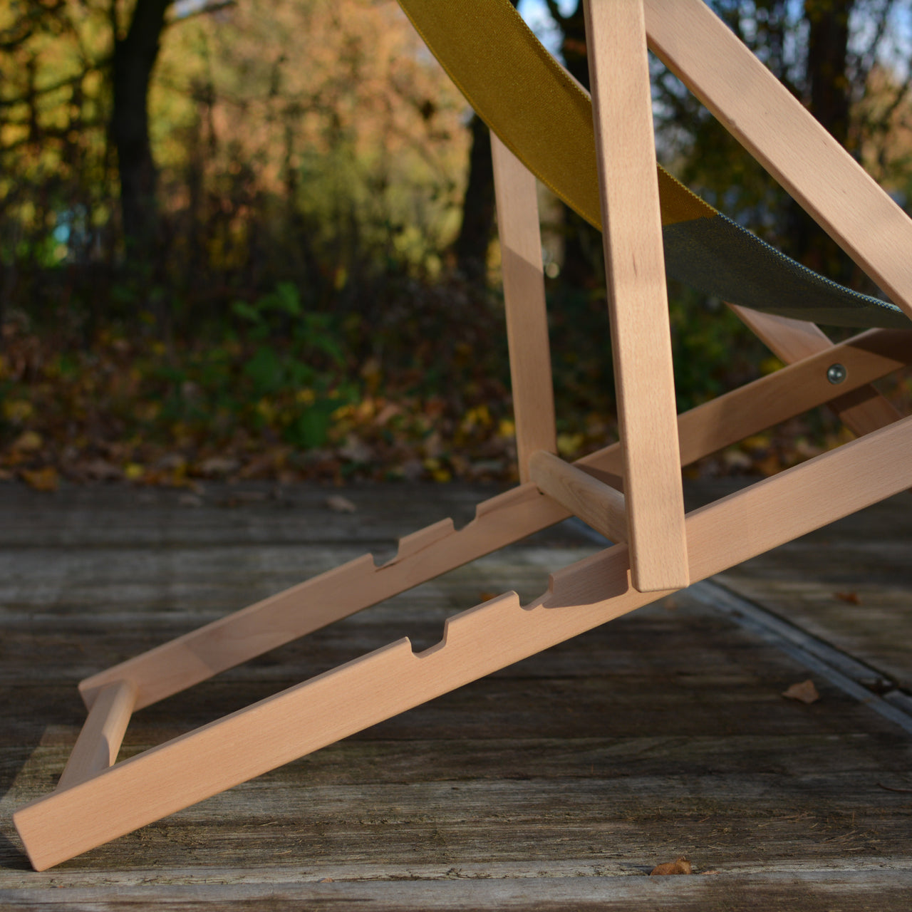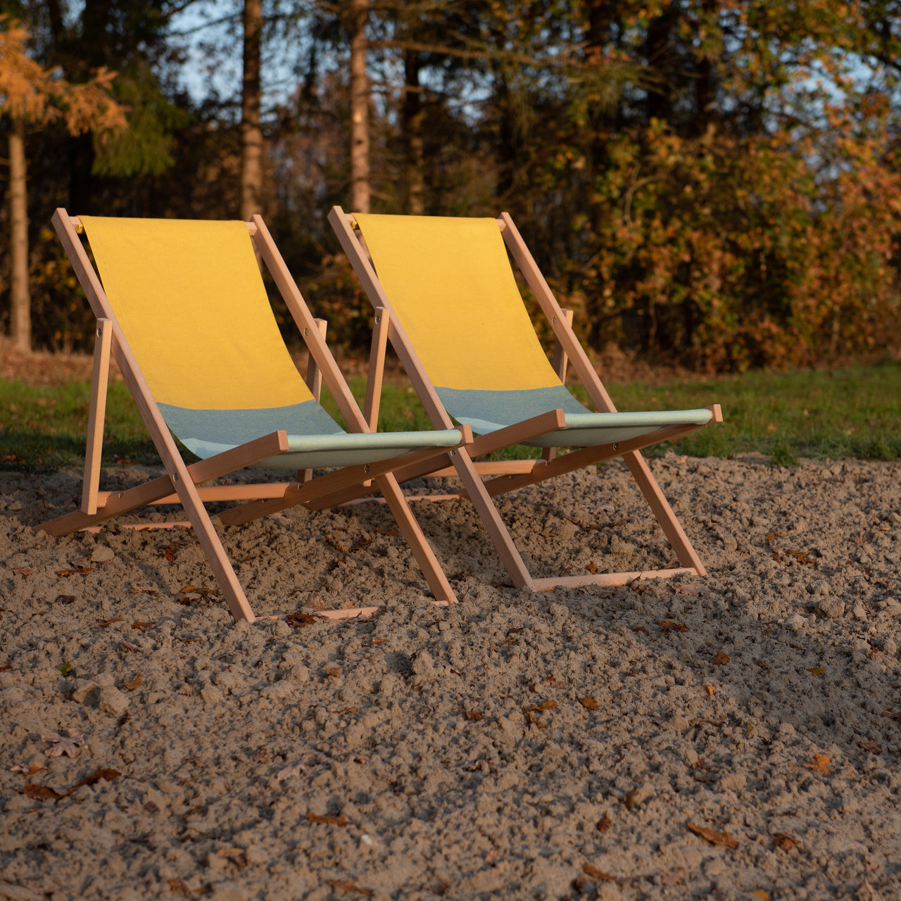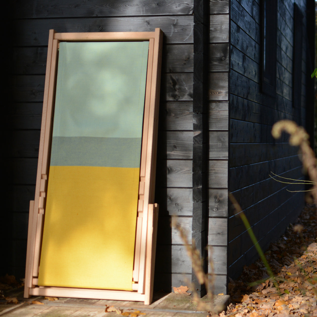 A fabric seat with colors inspired by the horizon from Eindhoven studio Raw Color enlivens Erik Stehmann’s updated version of the classic beach chair. And the fabric has a special coating, making it resistant to moisture and soiling. With a polished beech wood frame, the chair adjusts to 3 sitting positions and folds flat for storage. "The classic beach folding chair is a great concept,” says the designer, “mobile, foldable and of course comfortable.”