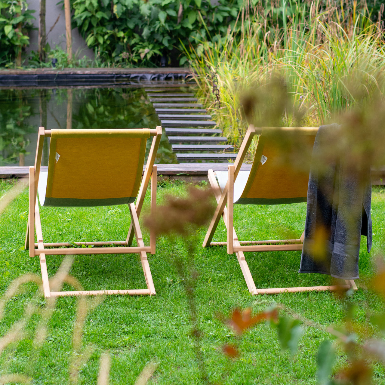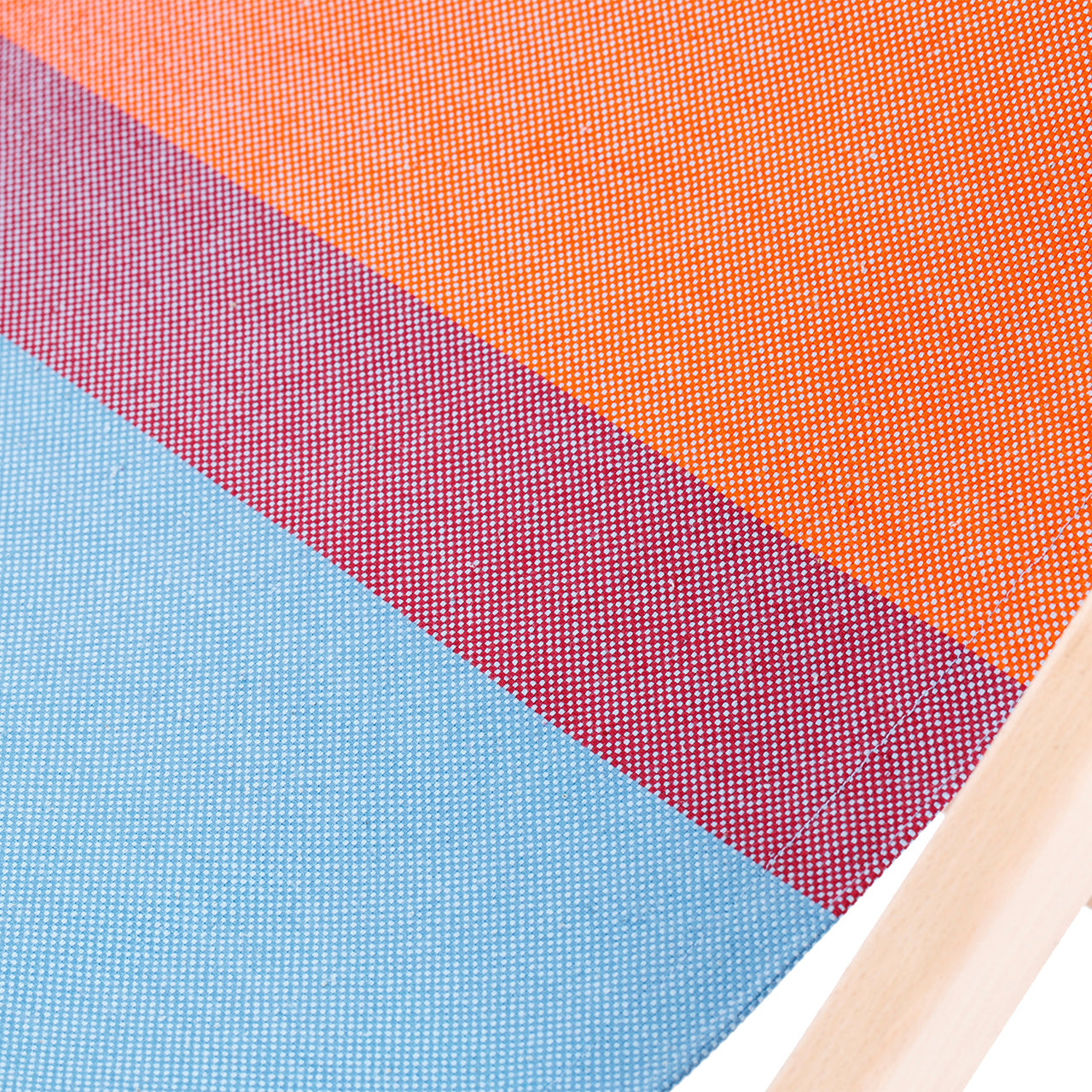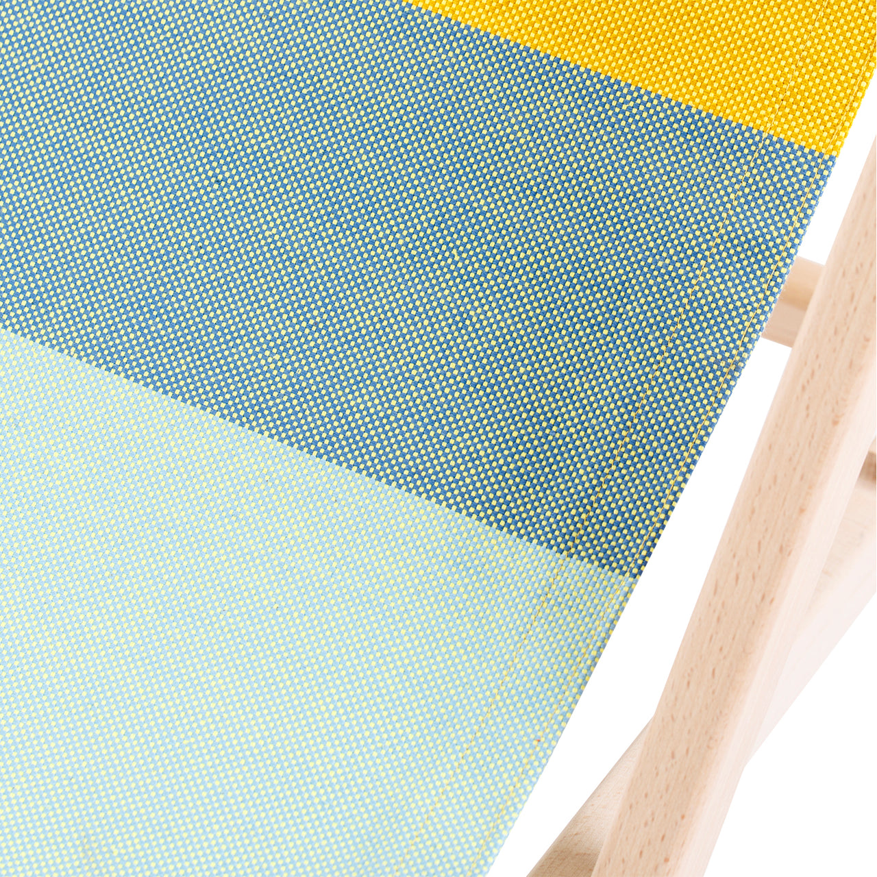 A fabric seat with colors inspired by the horizon from Eindhoven studio Raw Color enlivens Erik Stehmann’s updated version of the classic beach chair. And the fabric has a special coating, making it resistant to moisture and soiling. With a polished beech wood frame, the chair adjusts to 3 sitting positions and folds flat for storage. "The classic beach folding chair is a great concept,” says the designer, “mobile, foldable and of course comfortable.”