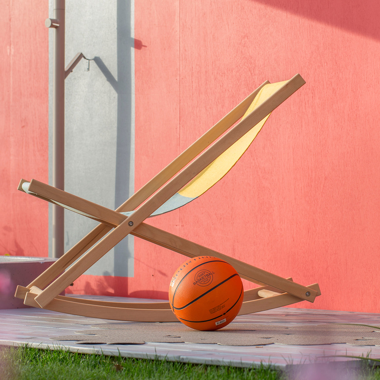 Dutch designer Erik Stehmann thought one better and devised Beach Rocker, enhancing on the comfort of classic beach/poolside sling seating with a rocking solid and varnished beechwood frame sourced from Dutch forests. Cotton seat fabric is available in a choice of cheerful stripes that nod to the horizon, created in collaboration with the hue-focused, Eindhoven duo Daniera ter Haar and Christoph Brach, aka Raw Color. This collapsible and stackable rocking chair is produced by the Holland house of design Weltevree, which focuses on high-quality, essential outdoor furnishings and lighting with a singular aesthetic and environmentally minded process.