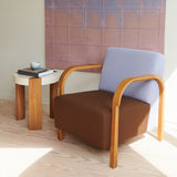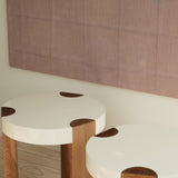 The FER Side Table features solid oak legs, which elegantly meet a creamy white piano lacquered top, forming a soft, broken circle. It fits perfectly beside a sofa or chair without overwhelming the space and the solid oak legs add a natural warmth to the table. Its sleek, round form makes it perfect for both formal and relaxed spaces.