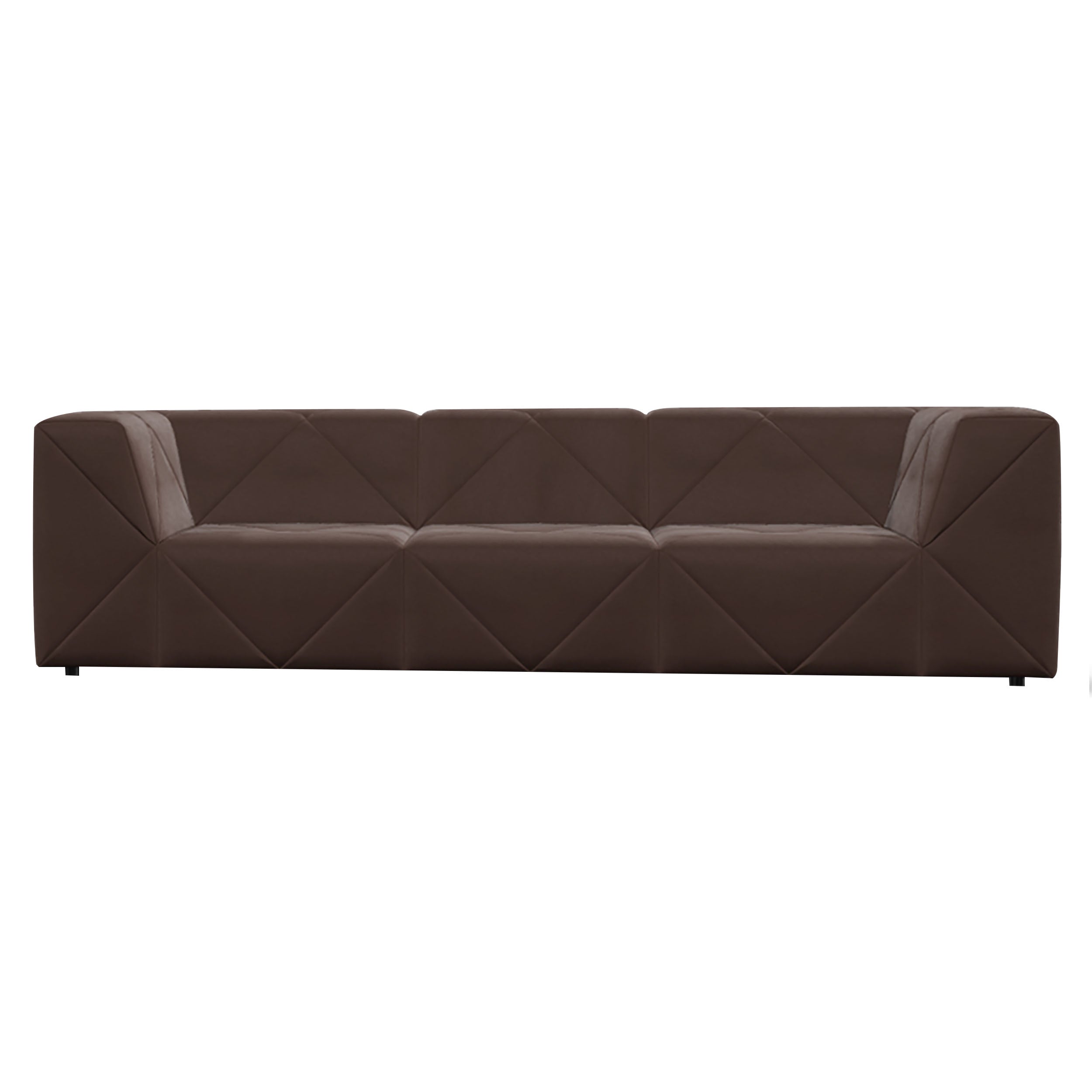 With high arms that flow into the backrest, this 3 Seater in Marcel Wanders' signature BFF modular series has an enveloping aura of comfort. With a nod to classic chesterfield-style stitching, the designer shakes things up with bold proportions and over-scaled diagonal quilting. Sink into the beckoningly soft yet resiliently supportive expanse, upholstered in any of a wide number of choices of fine fabric and leather upholstery.