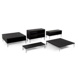 A half-size shelf unit adds versatility as a companion piece for the modular Sofa So Good. In a choice of 6 different finishes, it’s made of oak veneer on a wooden base with the collection’s same polished-aluminum feet. As a display for treasured objets or for keeping necessities close at hand, it can be placed on its own or as an contiguous part of a sofa arrangement.