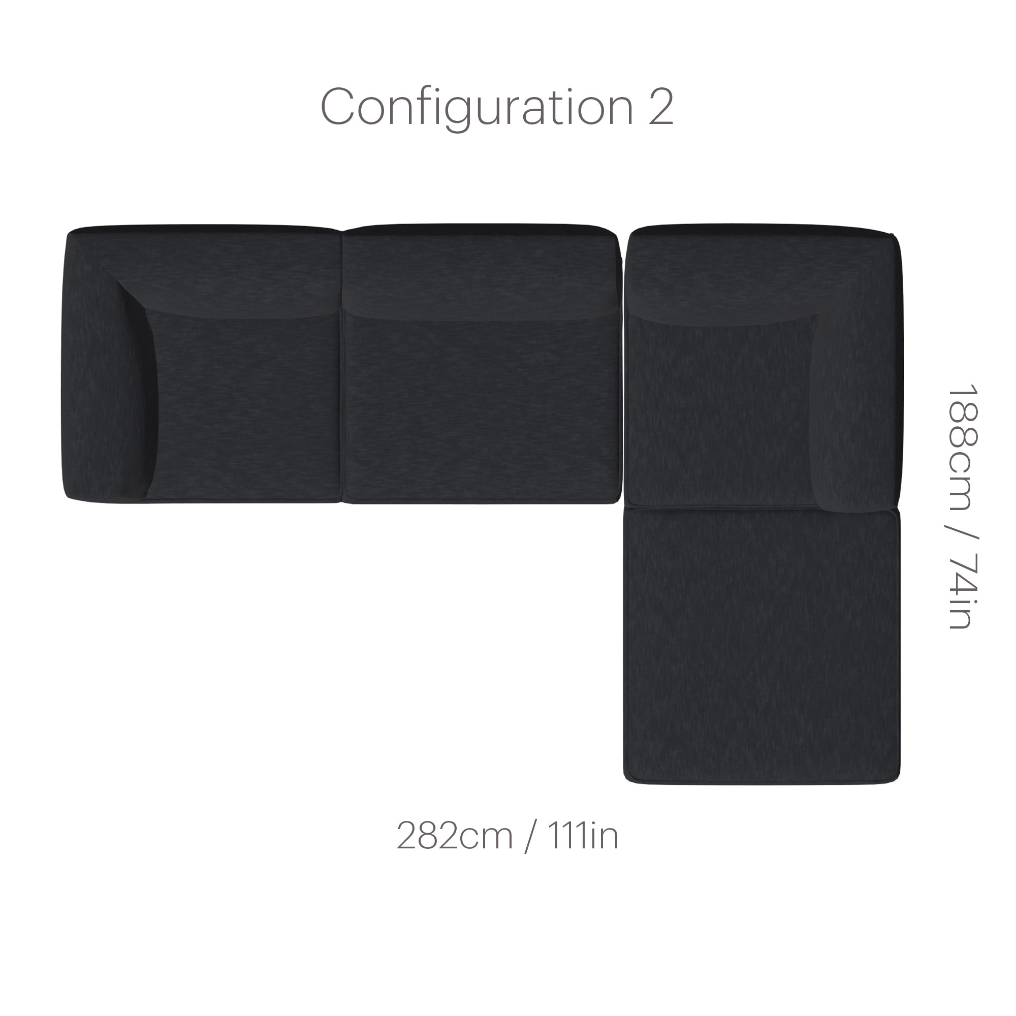 - Configuration 1 & 2: 29.5" h x 111" w x 74" d (75x282x188cm)