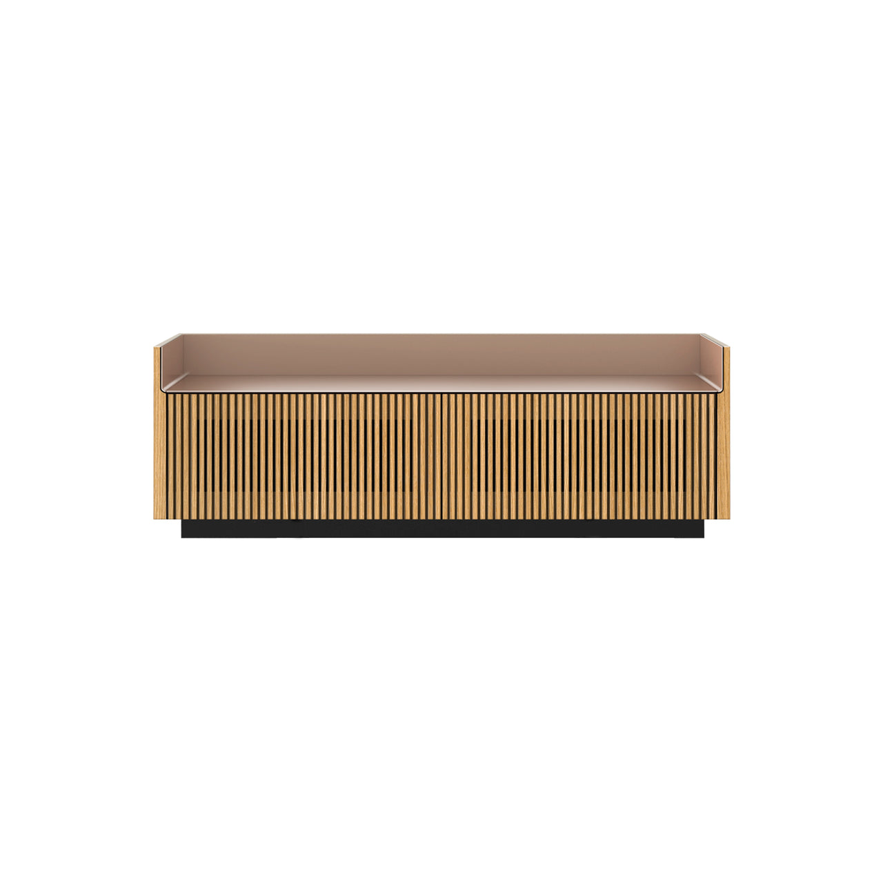Punt’s signature Stockholm collection takes on a slender look and accommodating height in a Slim version with 2 drop-down slatted TV doors and a height-adjustable shelf inside. With its lustrous aluminum top in a choice of shades, Mario Ruiz’s design comes in a wide range of oak or walnut cabinet finishes, resting on an epoxy powder-coated metal base.
