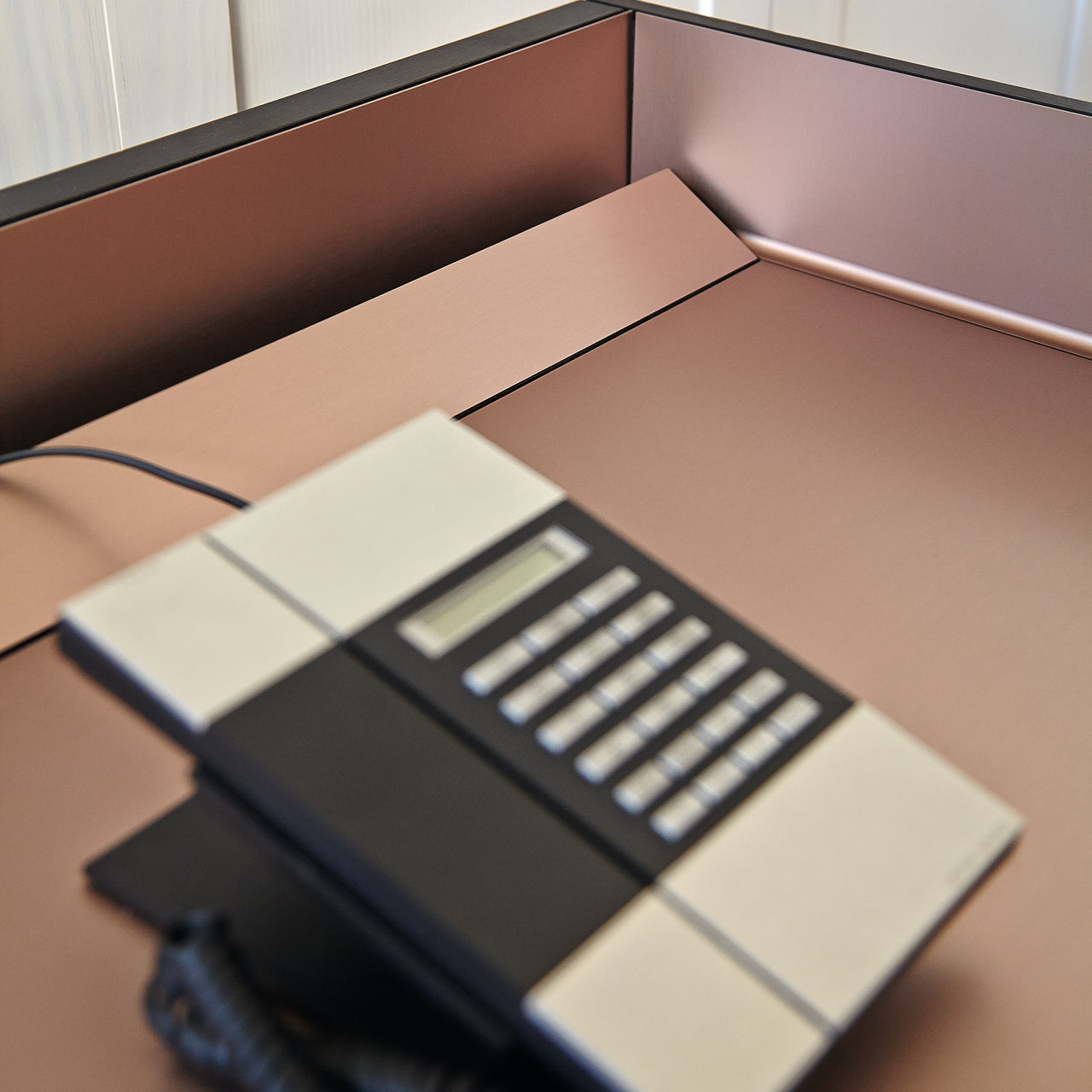 MDF, oak or walnut veneer, anodized aluminum, lacquered steel