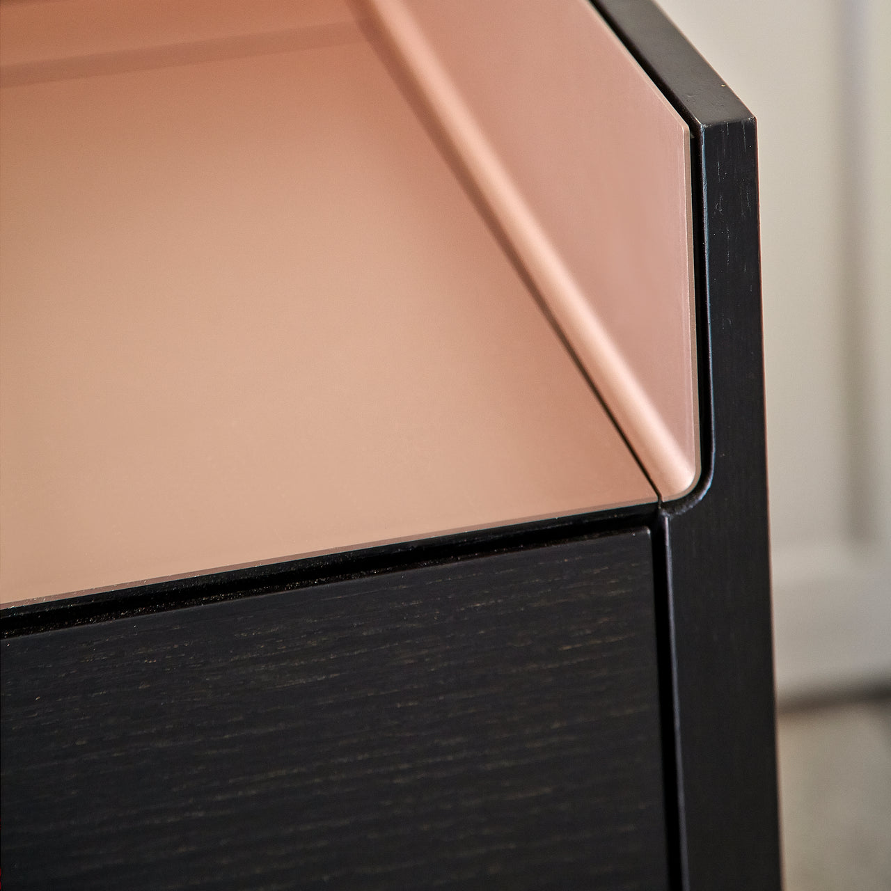 Stockholm STH504 Technic Sideboard: Composition 3 + Ebony Stained Oak + Anodized Aluminum Pale Rose + Black