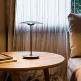 Thanks to a rechargeable lithium-ion battery, the portable table version of LED Ginger allows for cord-free, spur-of-the-moment lighting to go anywhere. Joan Gaspar's sleek signature lamp for Barcelona's Marset comes in a choice of its characteristic wenge or oak molded laminate or gleaming brass variations that suit a range of environs. With an integrated LED, the lamp features a 3-step dimmer that provides 5 to 20 hours of illumination on-the-go.