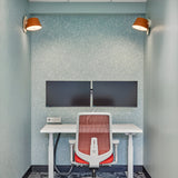 Also throwing a little shade—the Tam Tam A. This wall mounted single-shade fixture complements the eye-catching cluster pendant from Barcelona-based Marset and Berlin designer Fabien Dumas. In a choice of colors set on a white base plate, the shade can be rotated 360 degrees. Aim it downward, sideways or upward to reflect off the ceiling. Shade made of lacquered aluminum with an opalescent methacrylate diffuser over the open end to soften the light.